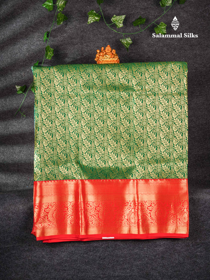 Semi Silk Pattu Pavadai (Bottle Green) With Red Blouse 44"