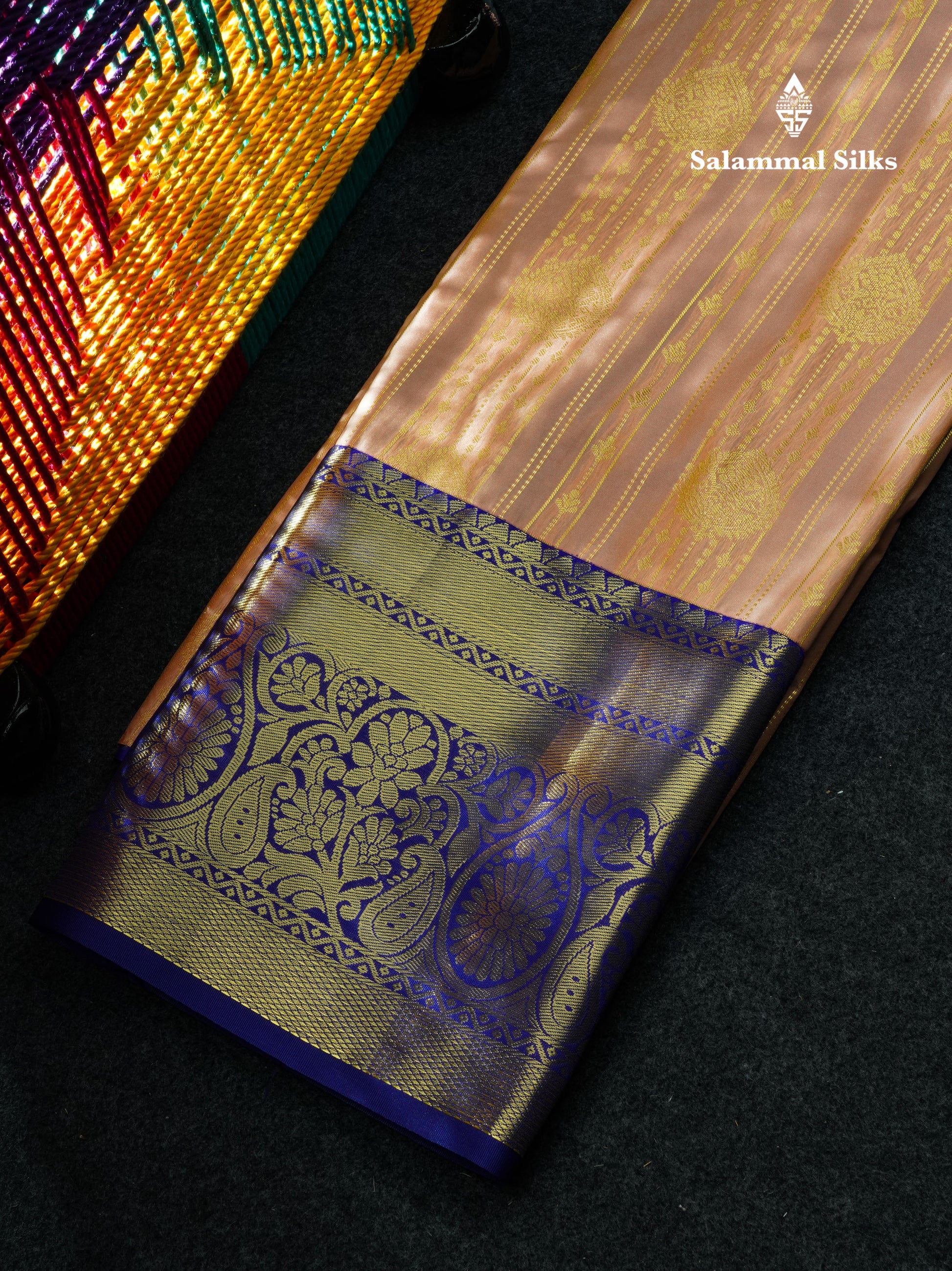 Semi Silk Pattu Pavadai Cream) With Navy Blue Blouse 44"