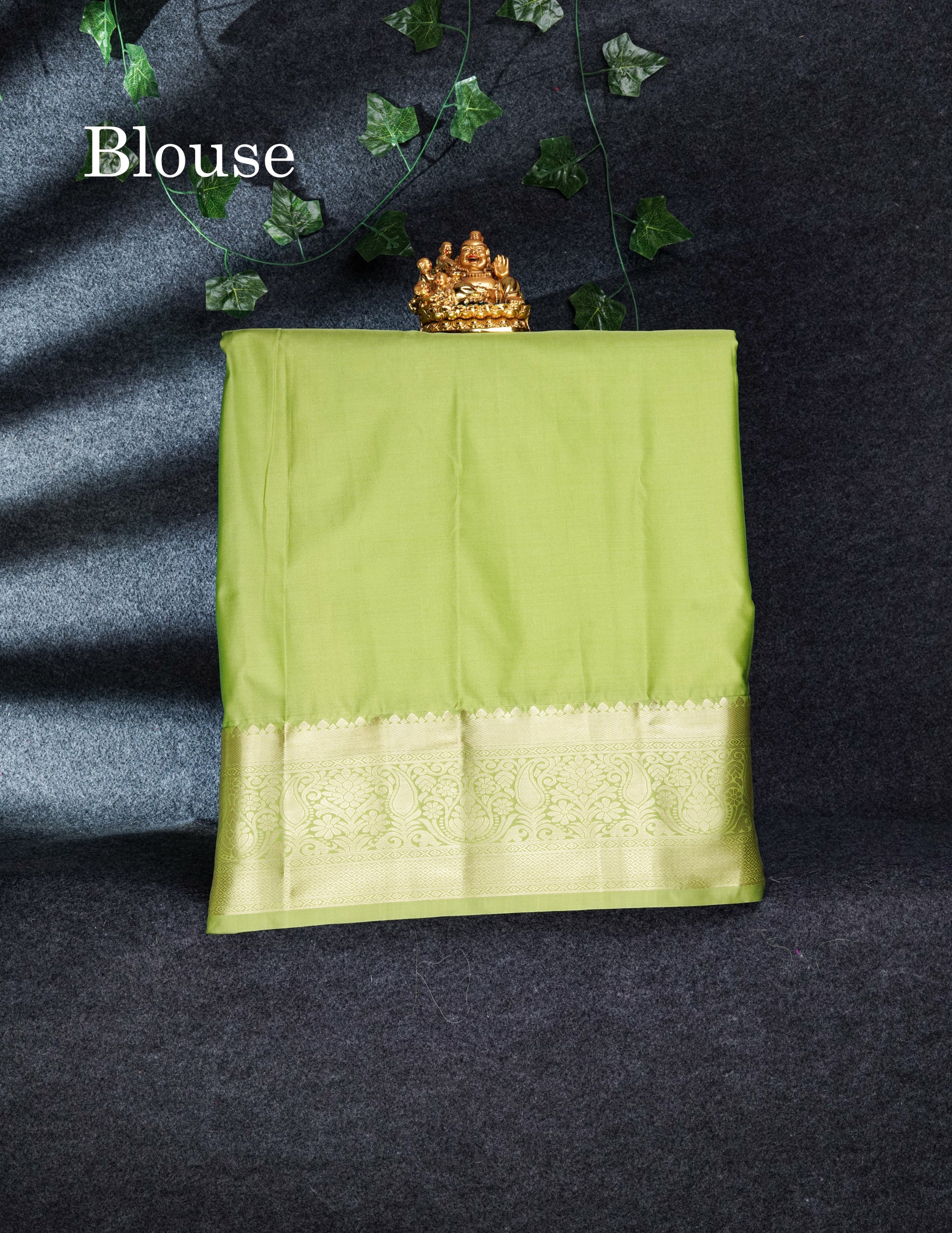Semi Silk Pattu Pavadai (Half White) with Pista Green Blouse 27"