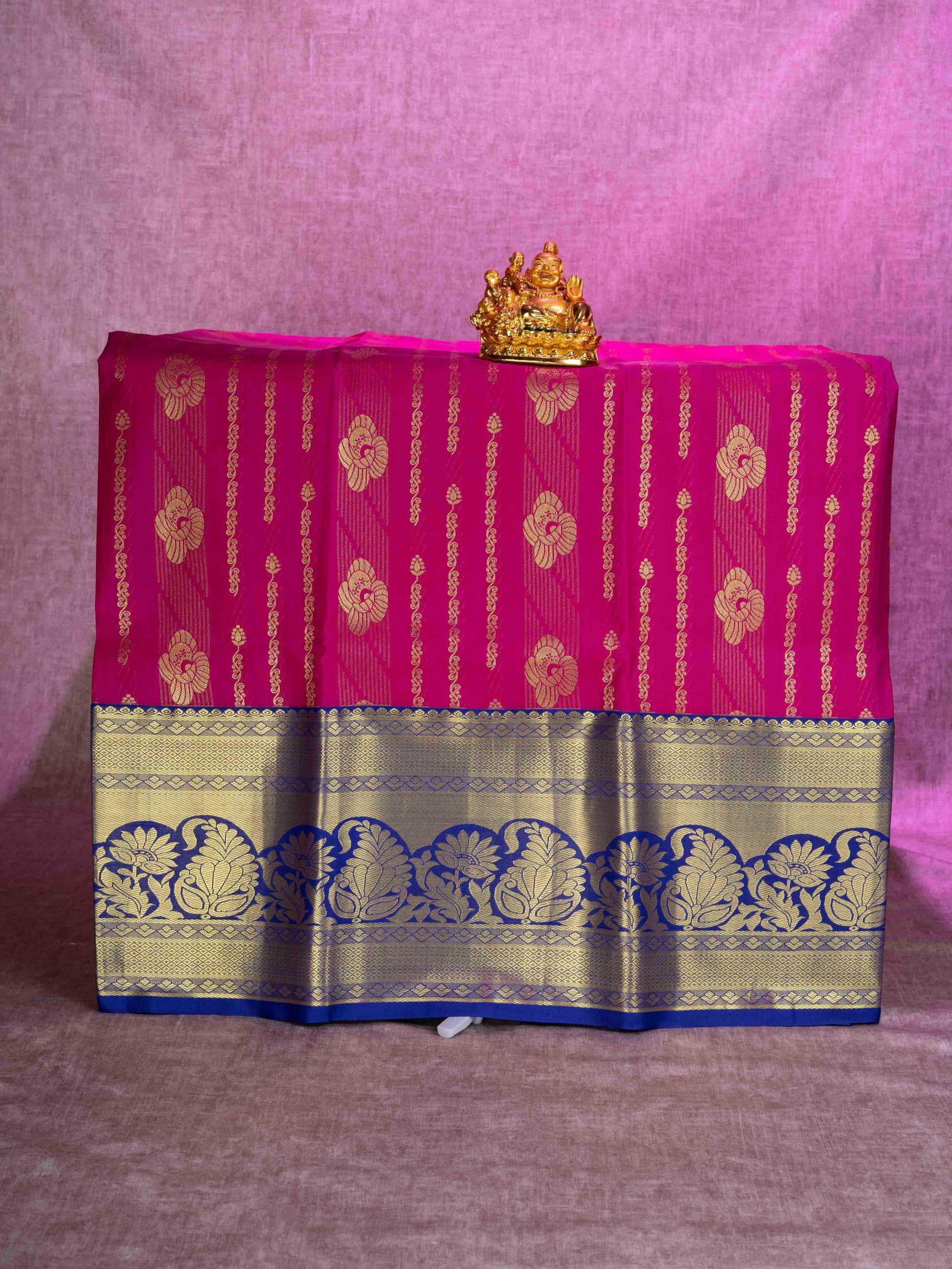 Semi Silk Pattu Pavadai (Magenta Pink) With Royal Blue Blouse 44"