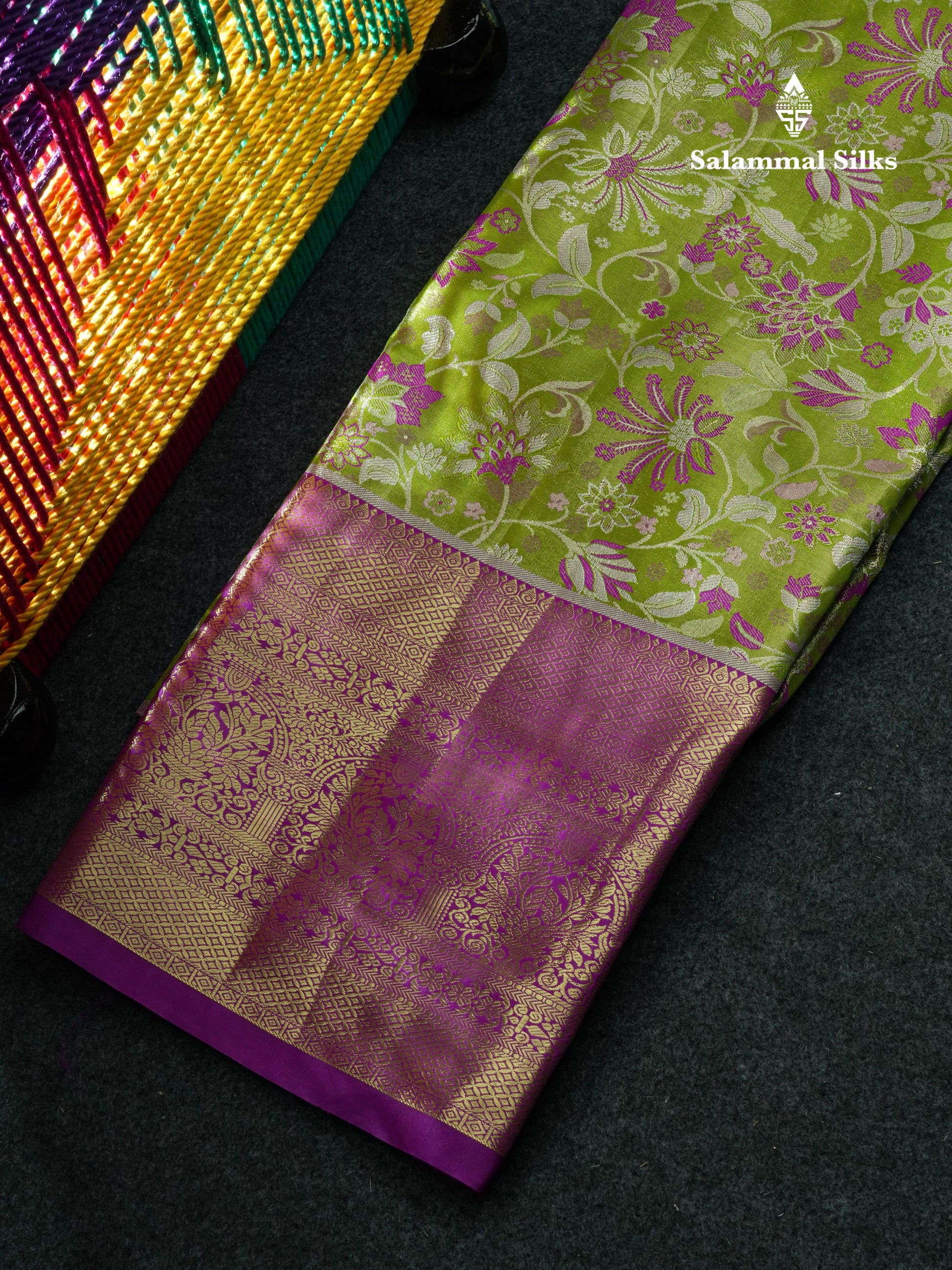 Semi Silk Pattu Pavadai (Manthulir Green) With Purple Blouse 44"