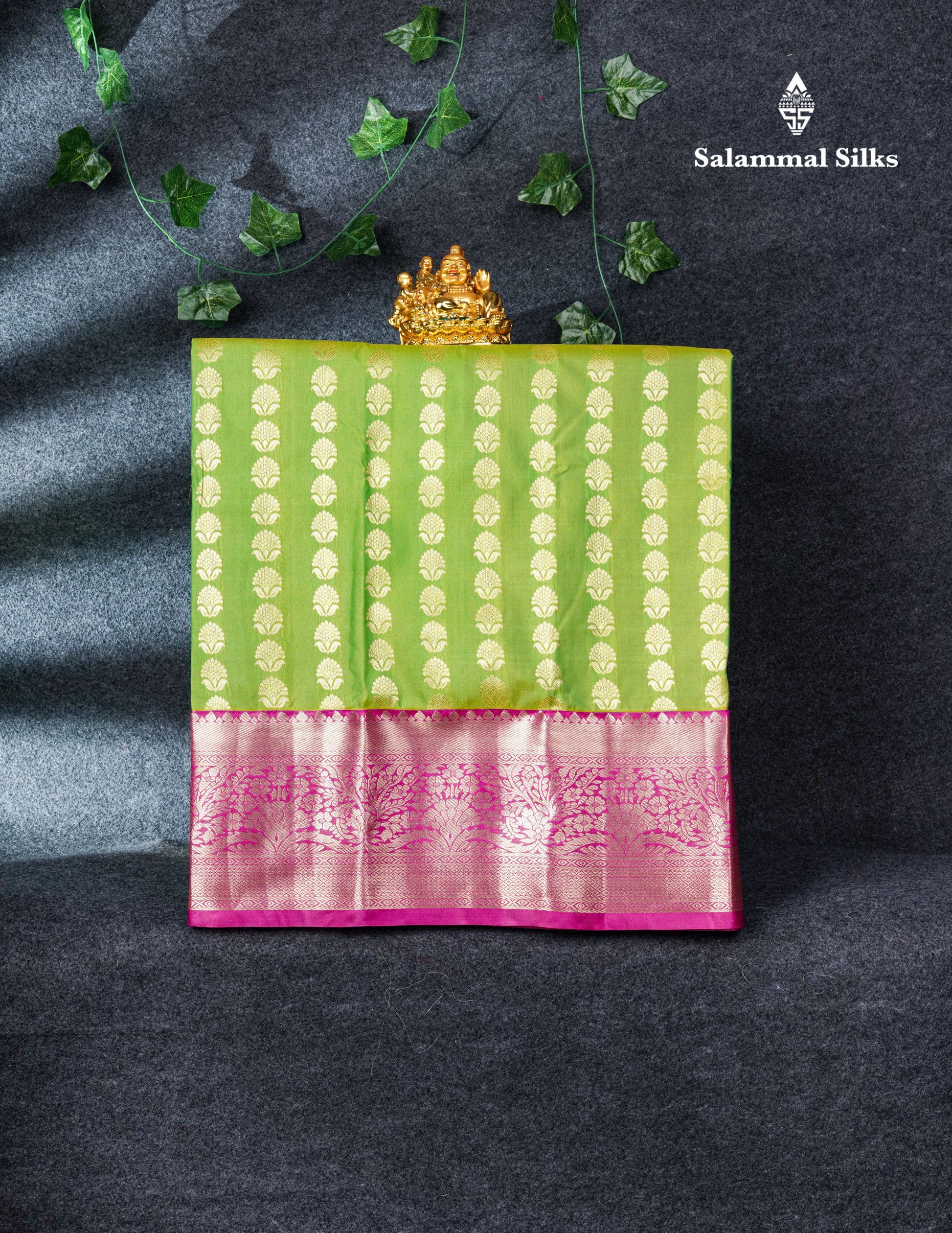 Semi Silk Pattu Pavadai (Parrot Green) With Pink Blouse 27"