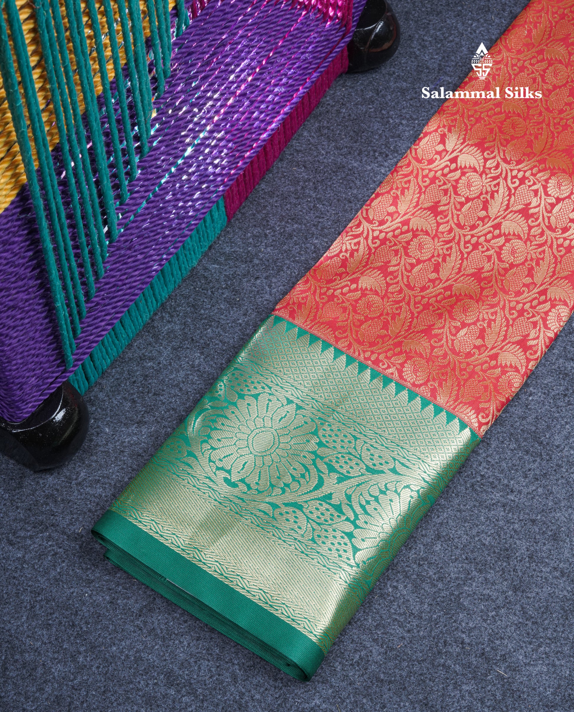 Salammal is known for its handloom sarees. In some sarees, there is cross-weaving between the body and the pallu, which is a sign of pure handloom sarees. This can be seen in Kanchipuram embossed sarees.