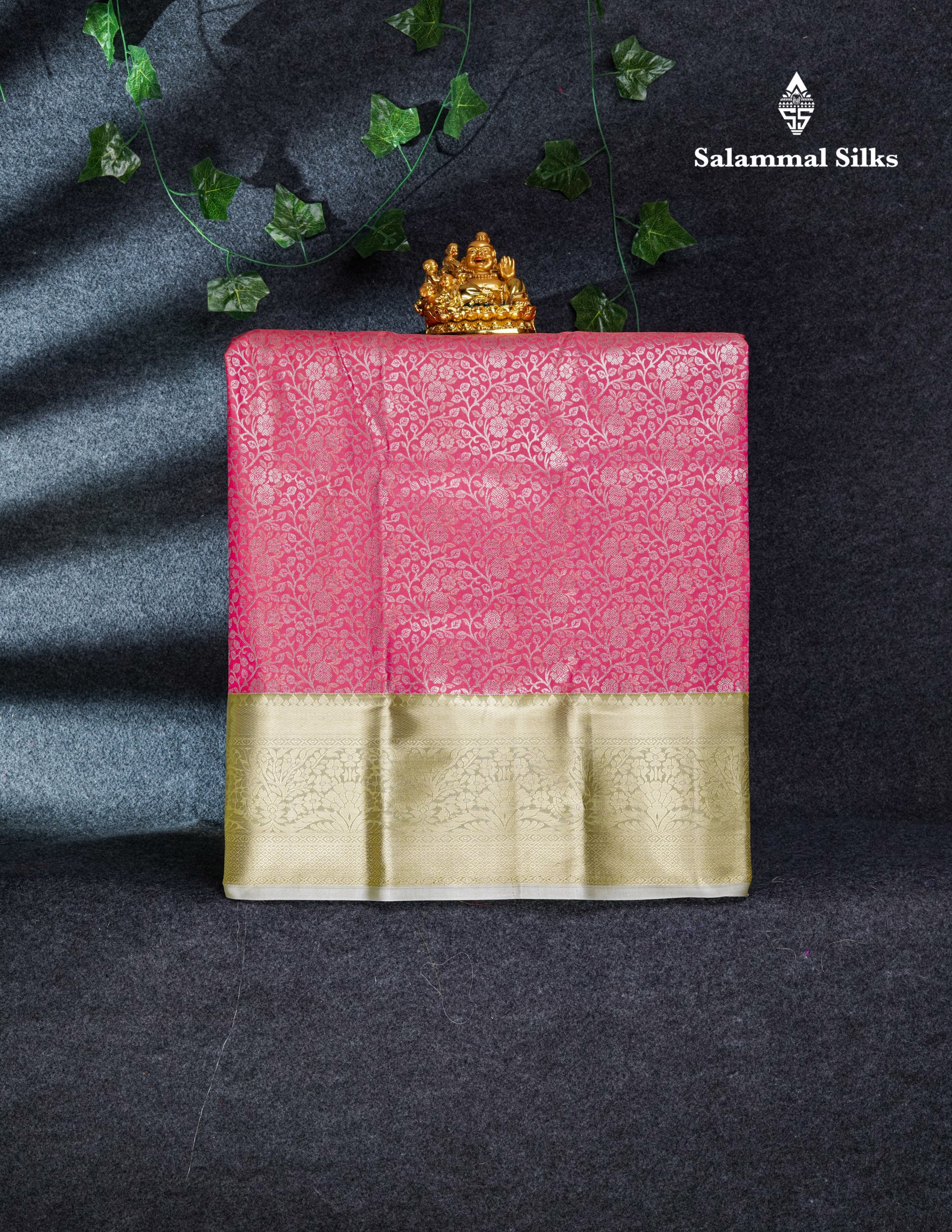 Salammal is known for its handloom sarees. In some sarees, there is cross-weaving between the body and the pallu, which is a sign of pure handloom sarees. This can be seen in Kanchipuram embossed sarees.