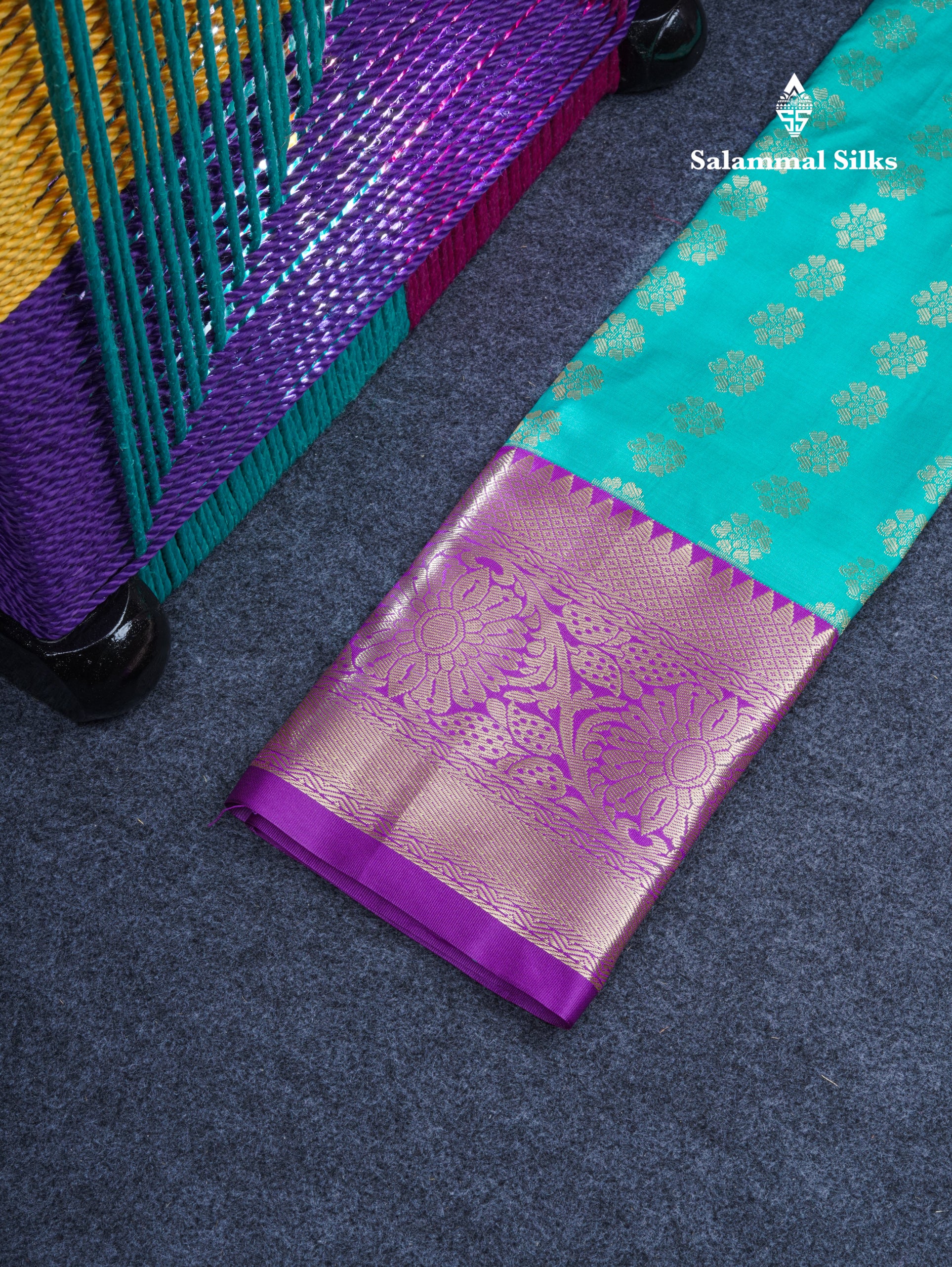 Semi Silk Pattu Pavadai (Sapphire Green) with Purple Blouse 27"