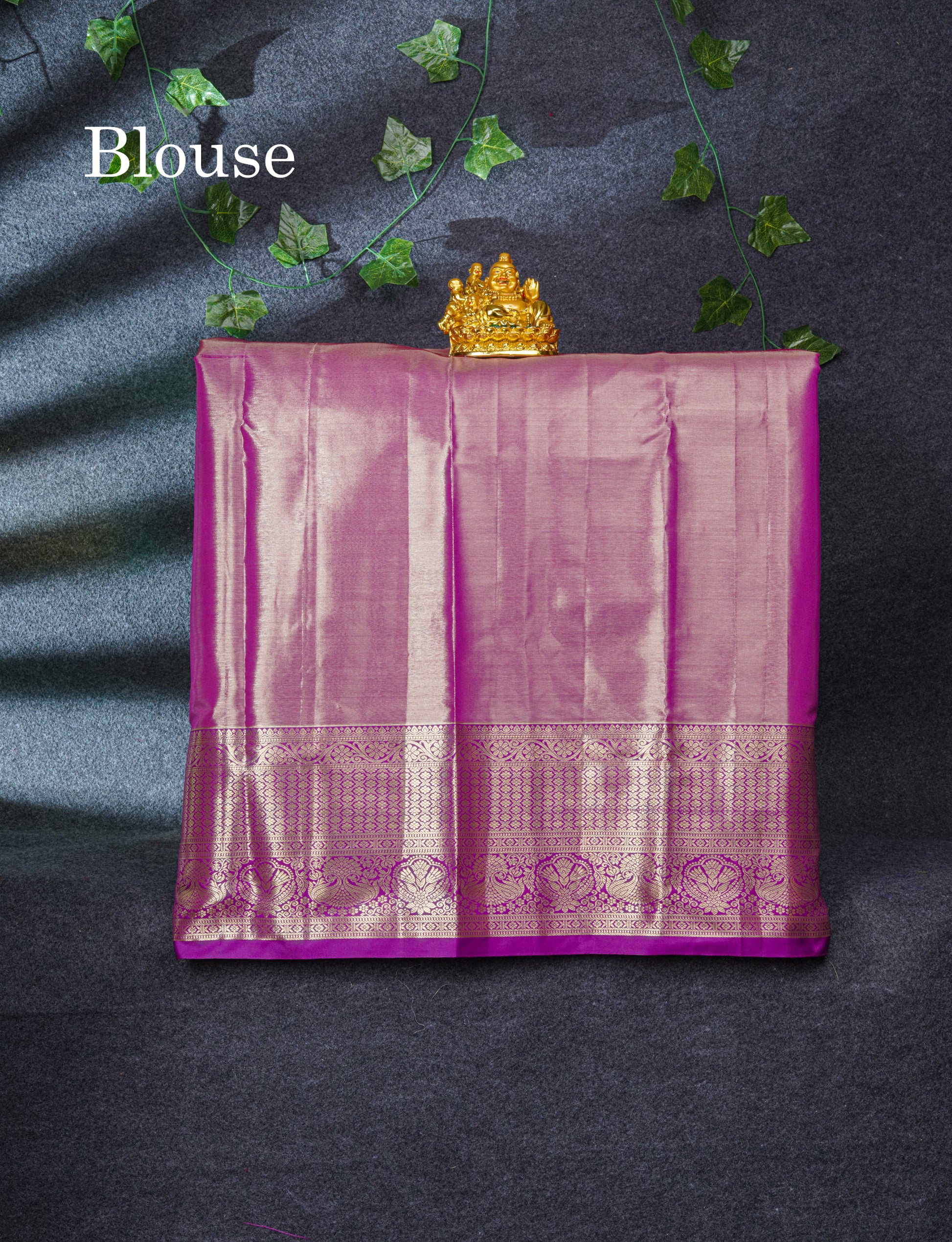 Semi Silk Pattu Pavadai Tissue (Golden Yellow) With Magenta Pink Blouse 35.5"