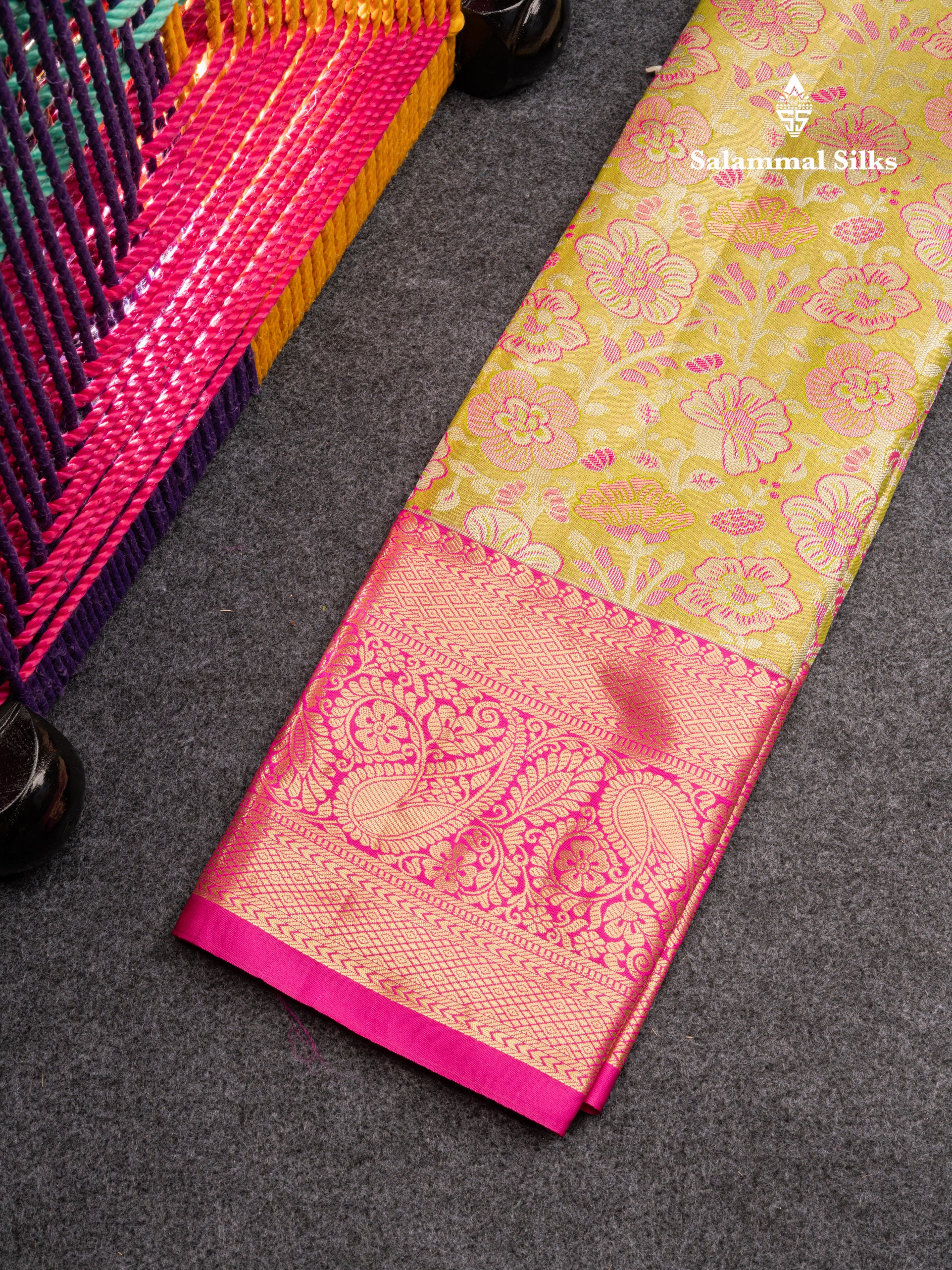 Semi Silk Pattu Pavadai Tissue (Manthulir Green) with Pink Blouse 27"