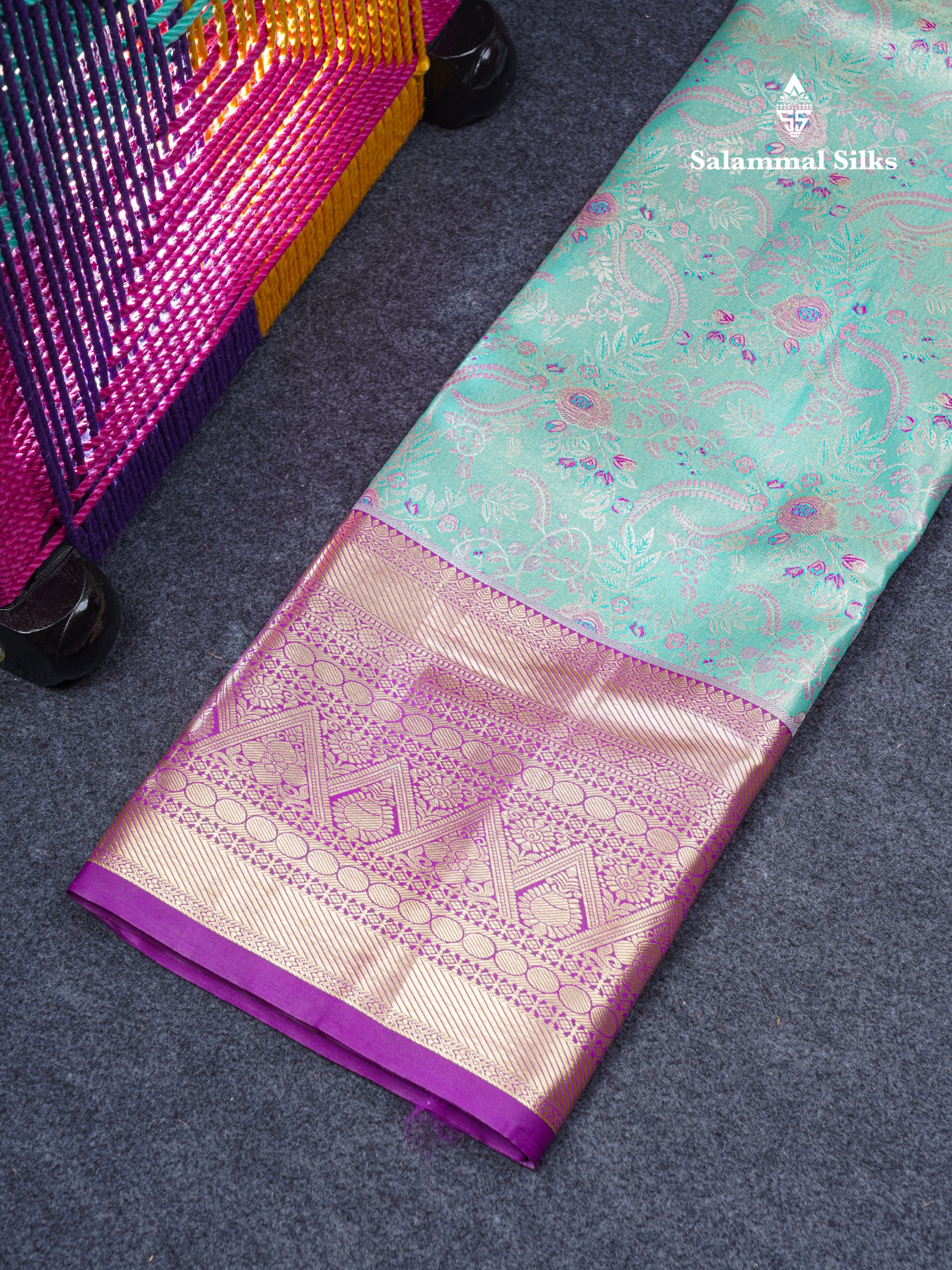 Semi Silk Pattu Pavadai Tissue (Sea Green) With Contrast Dark Purple Blouse 45"
