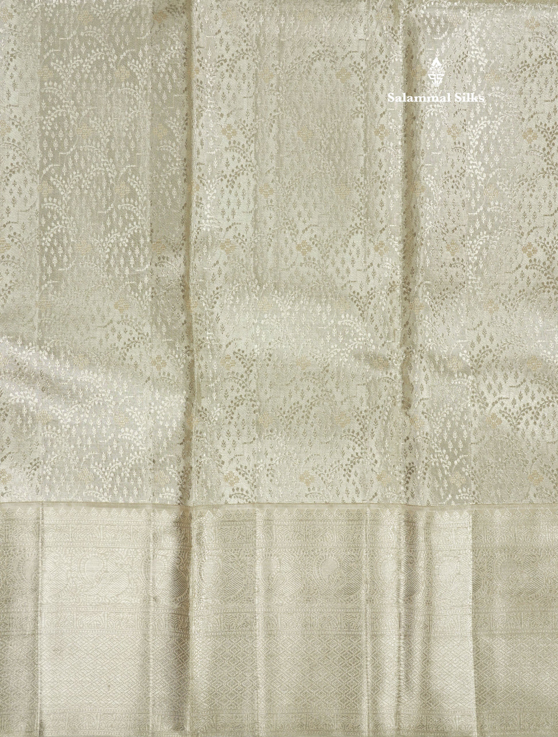Silver Colour Tissue Pure Kanjivaram Silk Saree With Traditional Self Border