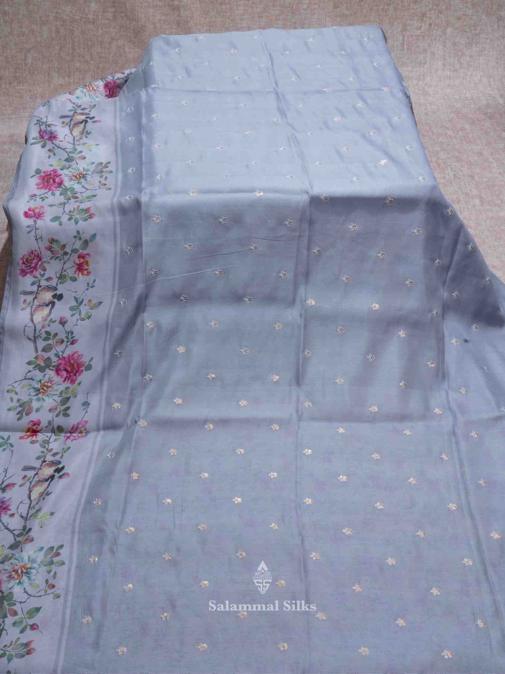 Silver Grey Color Tussar Fancy Saree with Printed Fancy Border and Blouse
