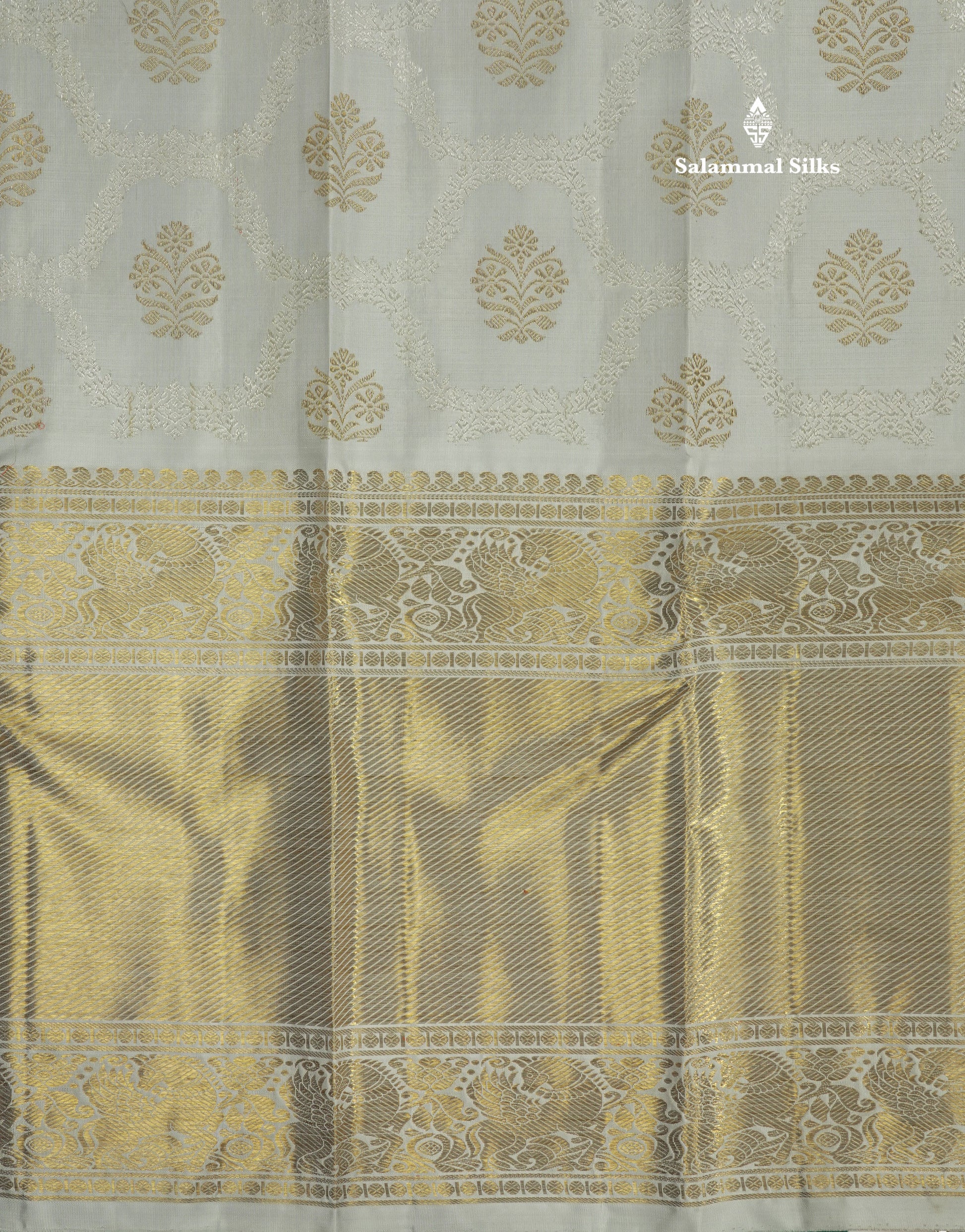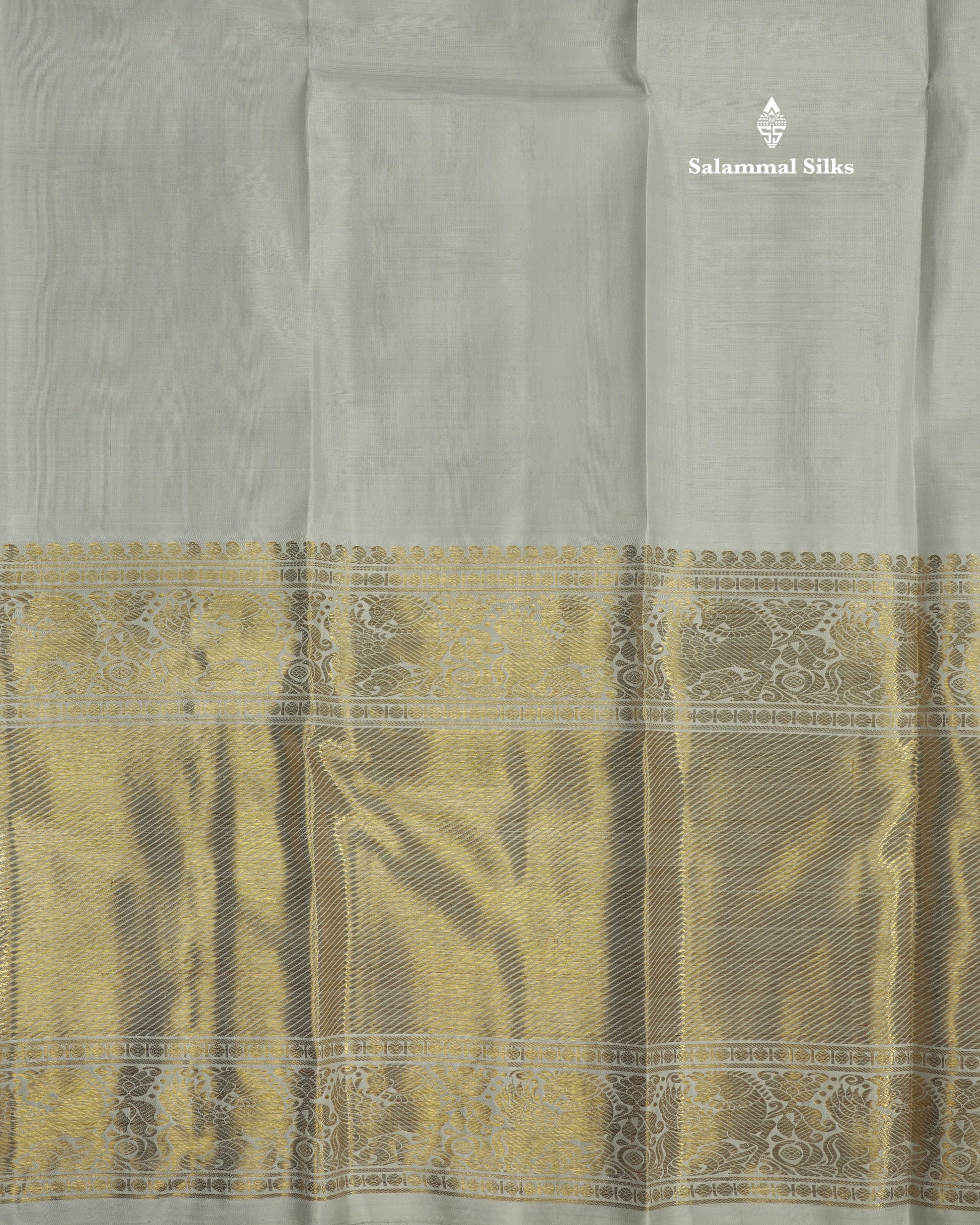 Silver Grey Pure Kanjivaram Silk Saree (2G) Zari With Self Long Border
