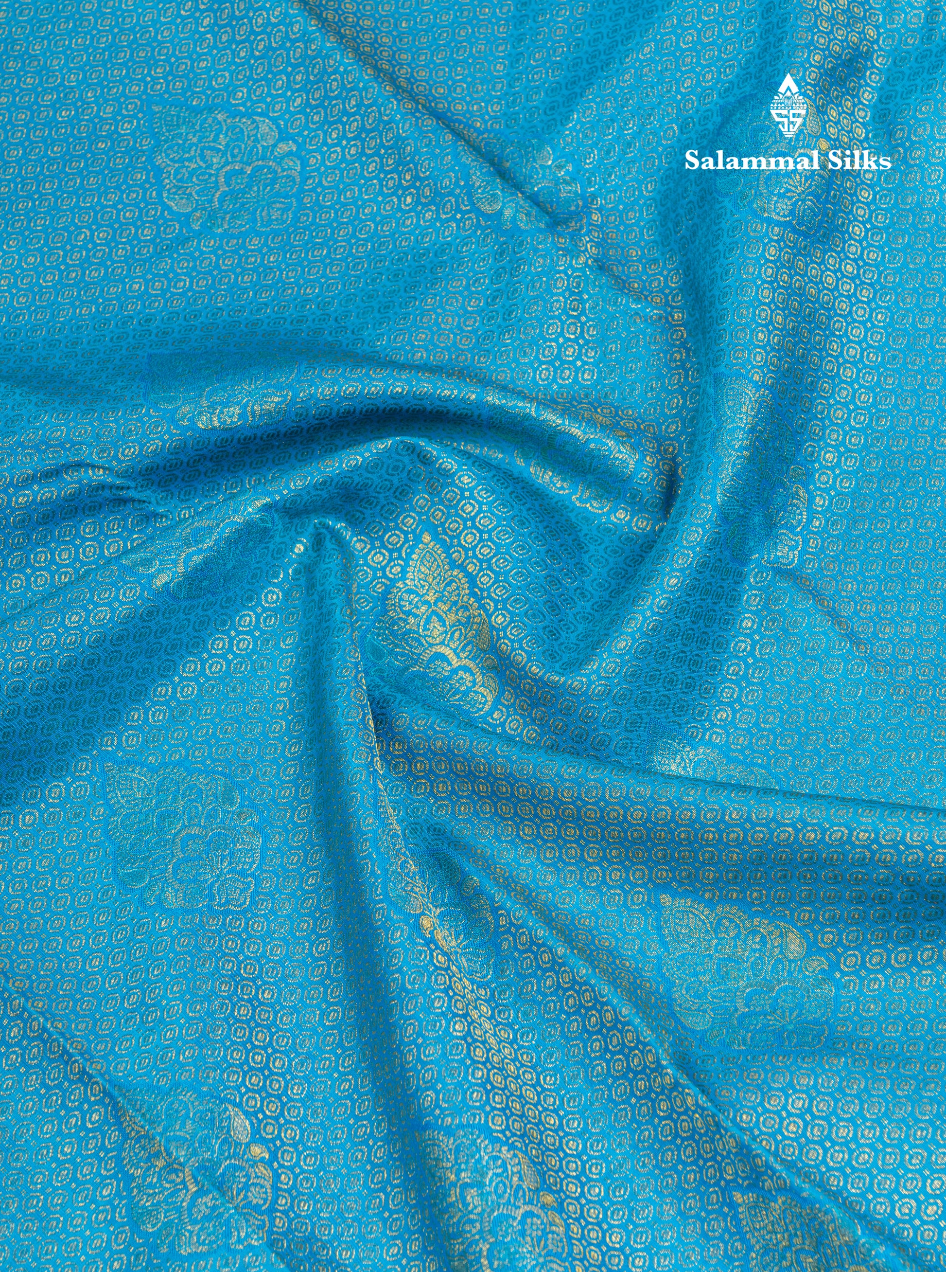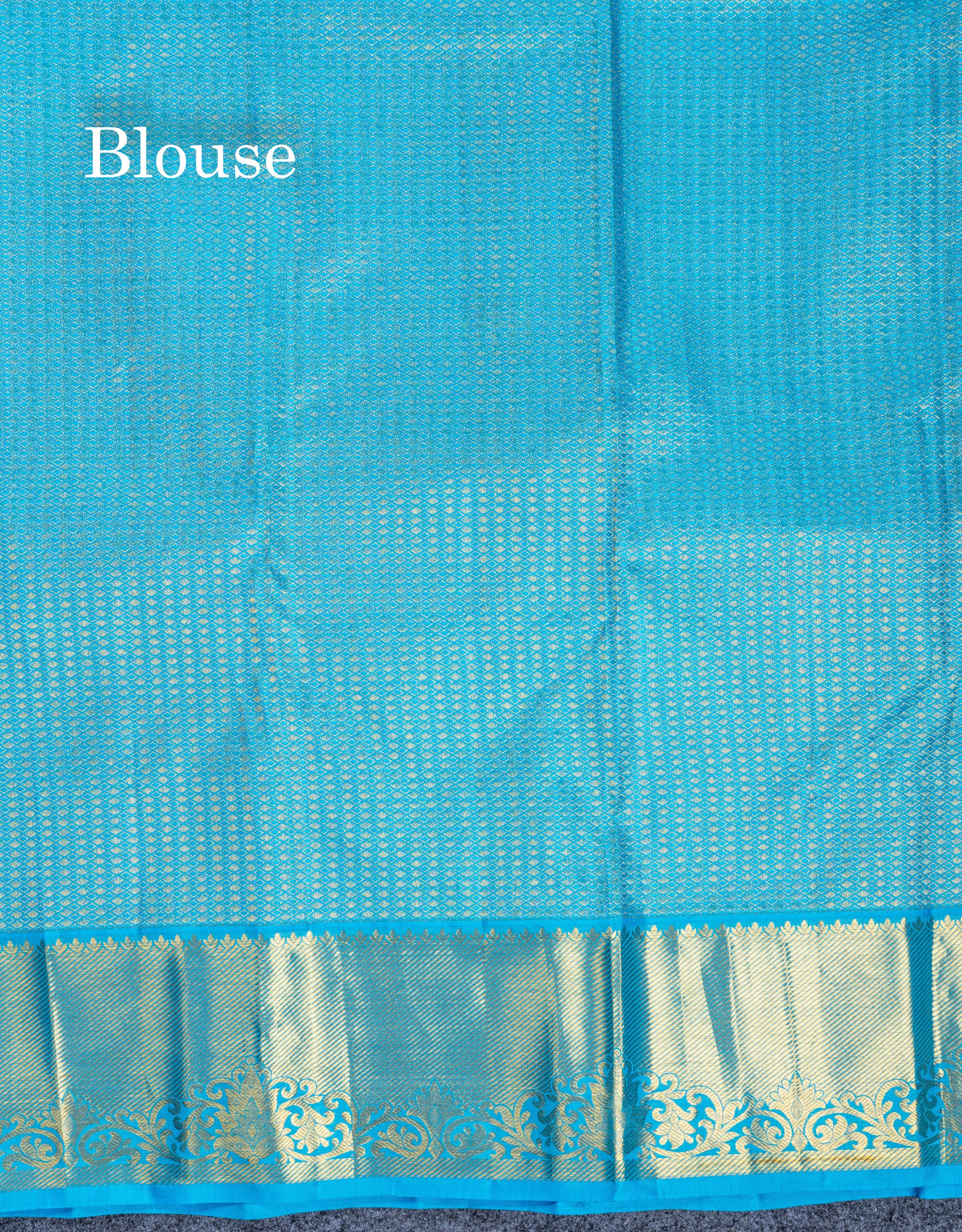Sky Blue Bridal Pure Kanjivaram Silk Saree With Traditional Border