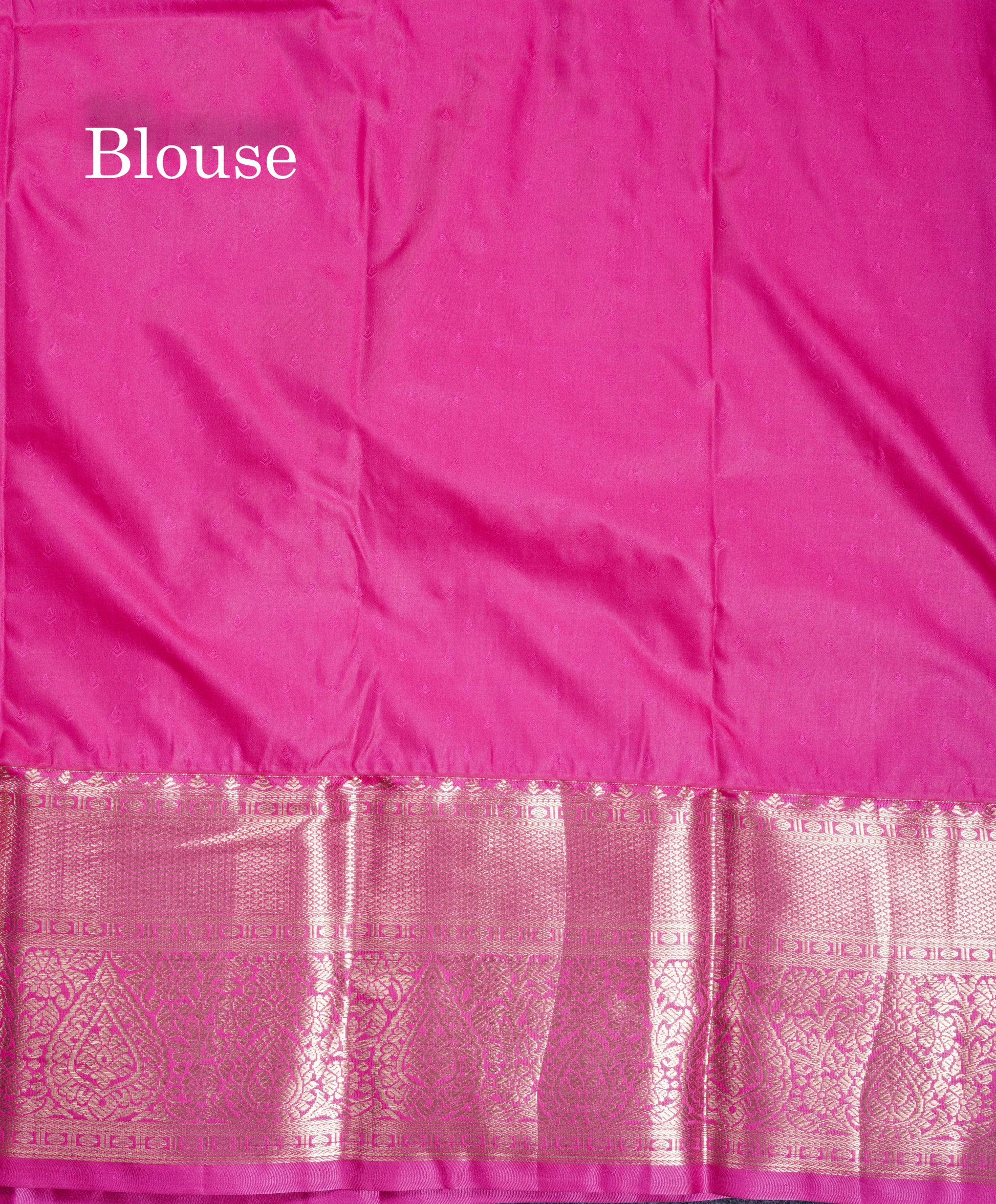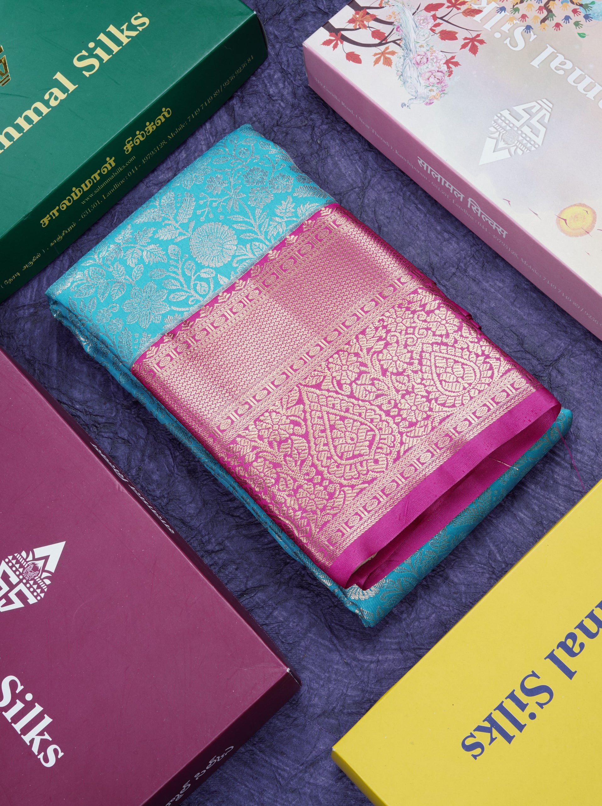 Sky Blue Bridal Semi Silk Saree With Contrast Magenta Pink Long Border