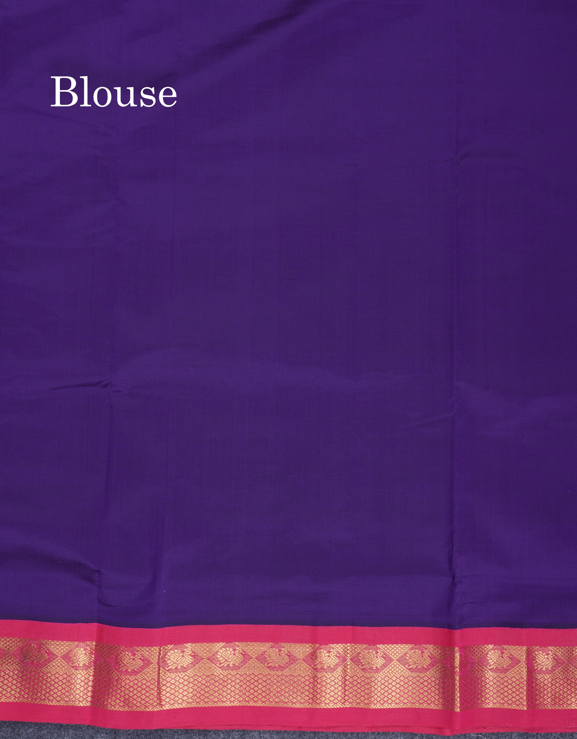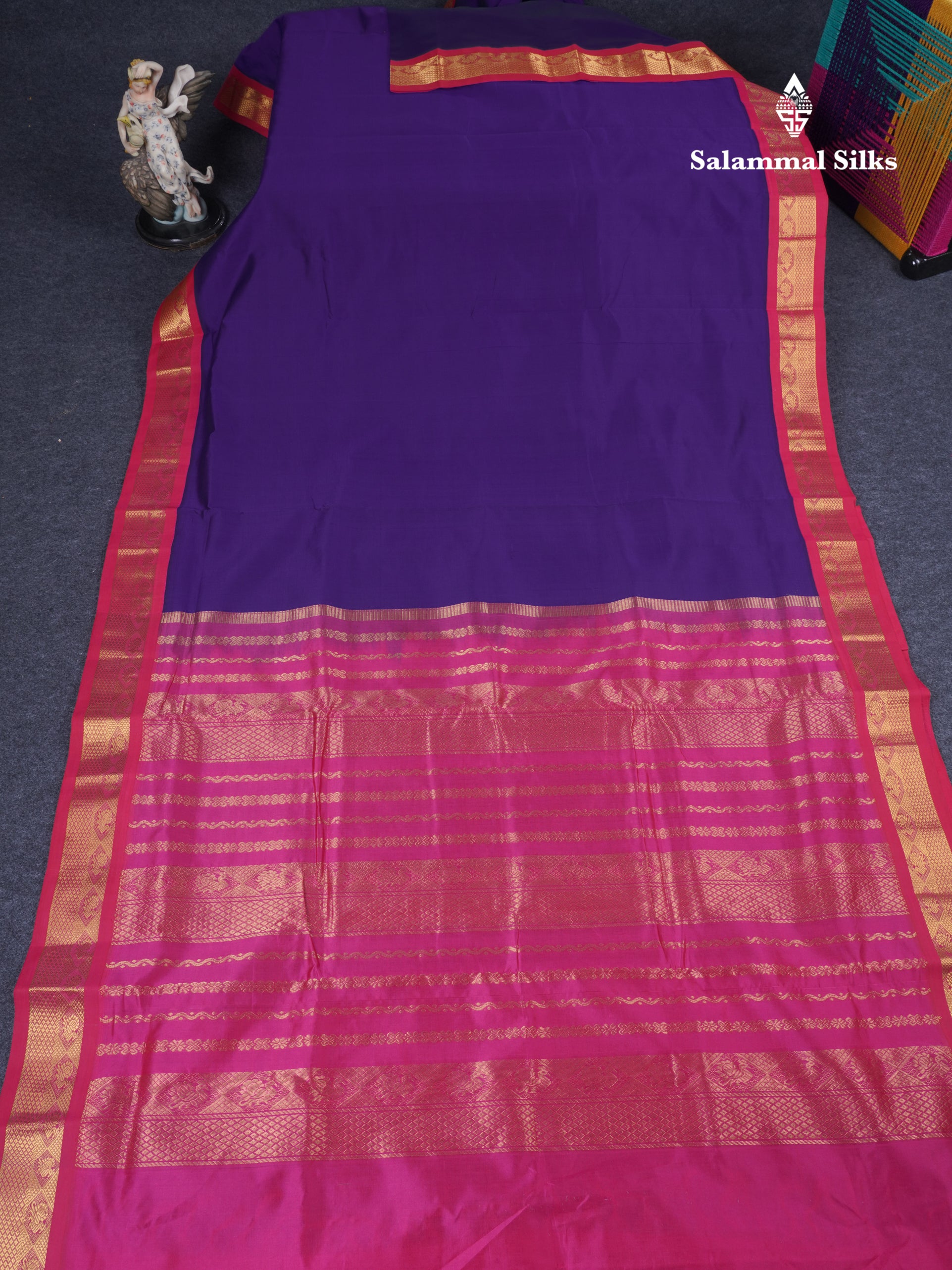 Violet Plain 9.5 Yards Semi Silk Cotton Saree With Contrast Pink Traditional Border