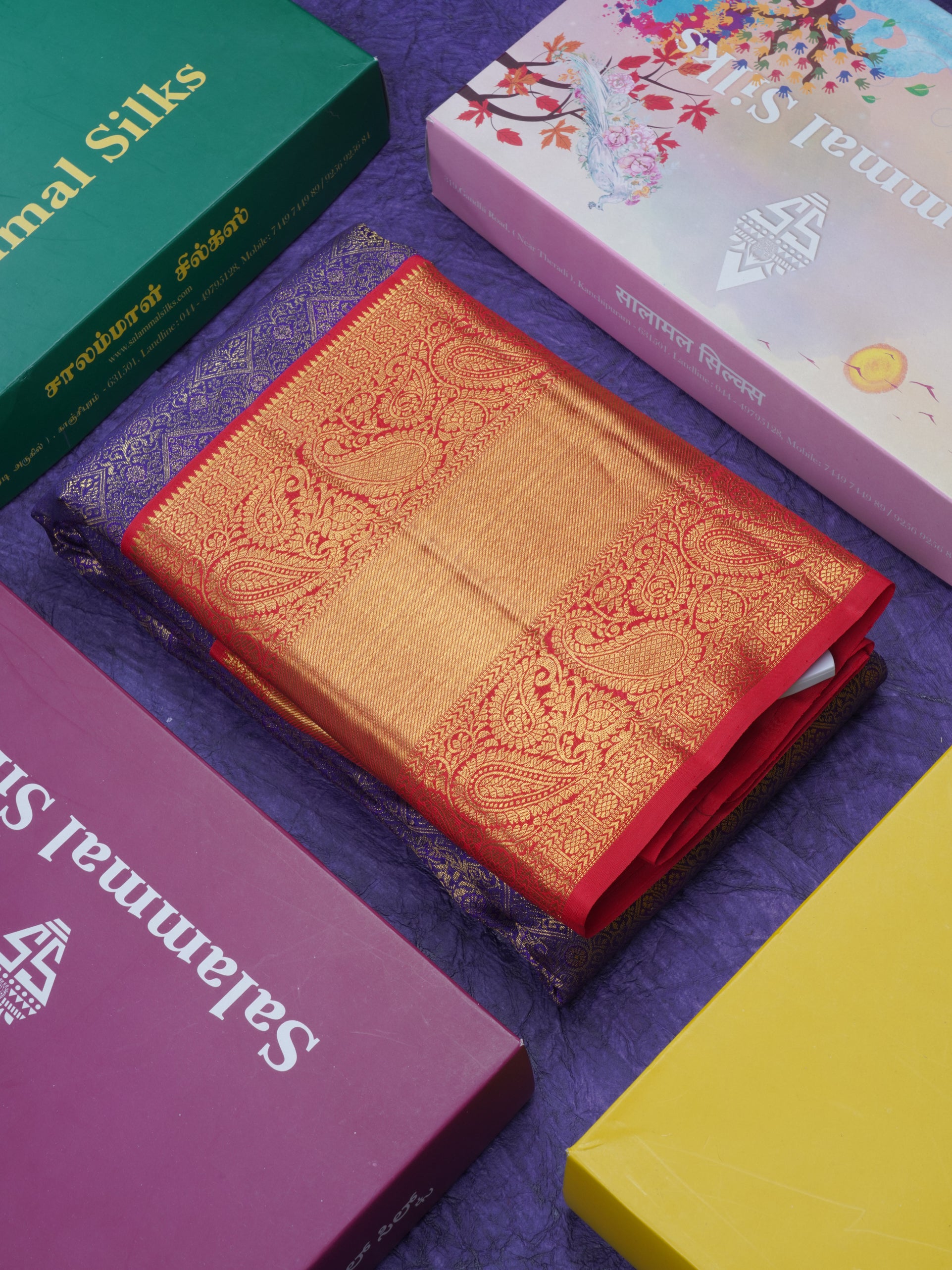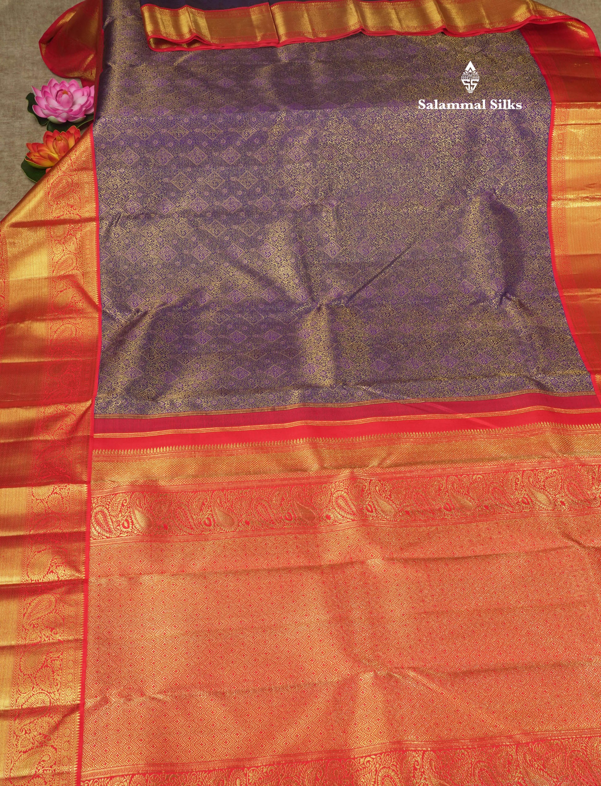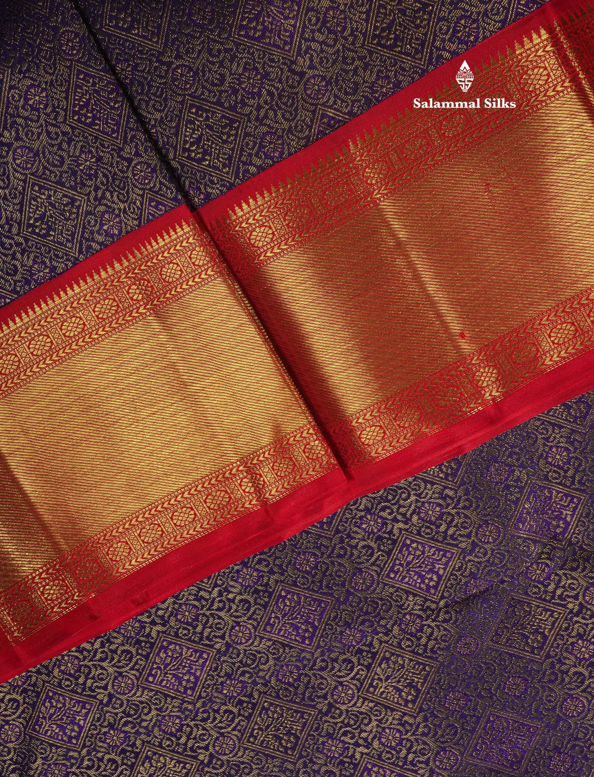 Korvai Violet Pure Kanjivaram Silk Saree (2G) Zari With Contrast Red Border