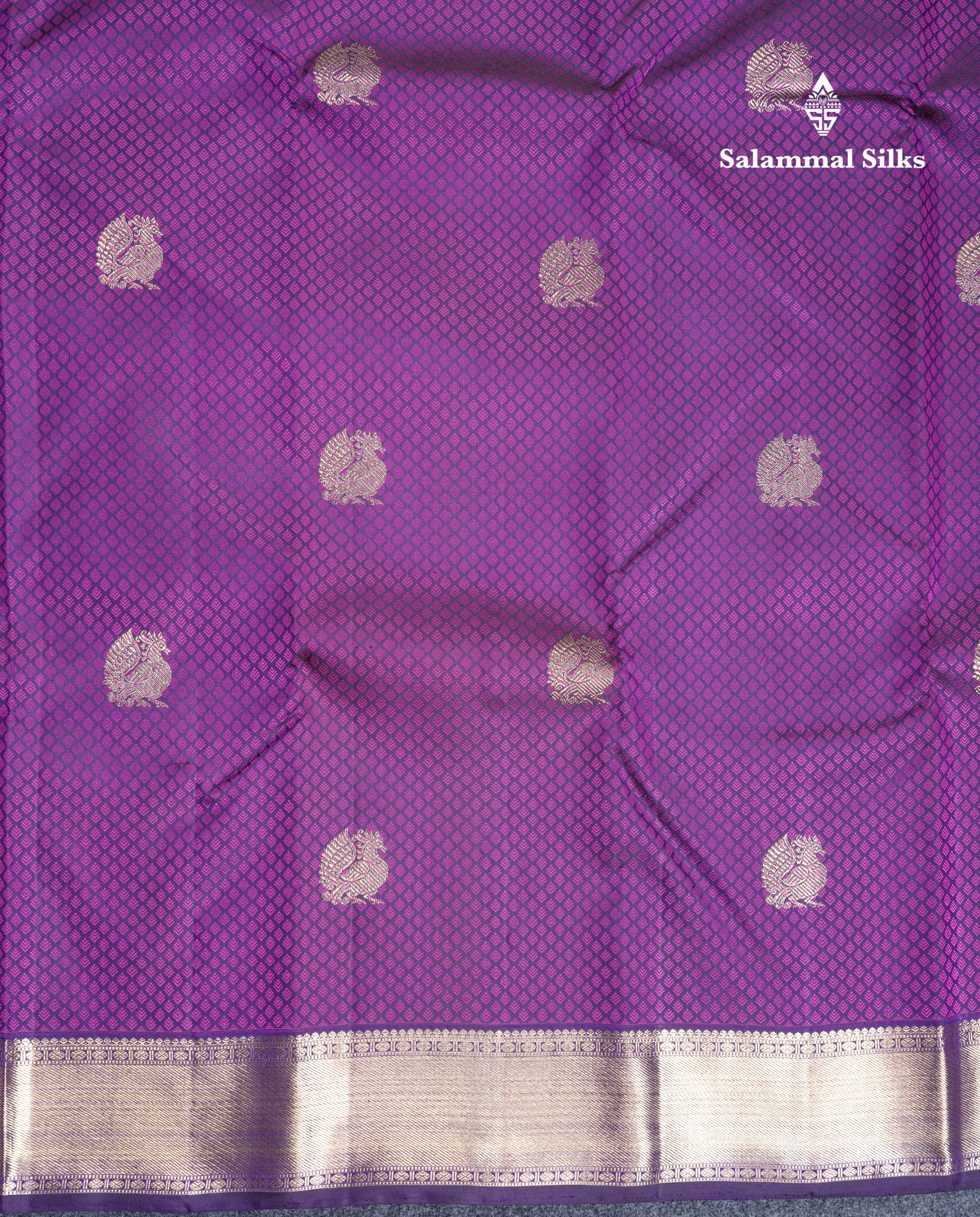 Violet Pure Kanjivaram Silk Saree Pure Zari with Beautiful Border