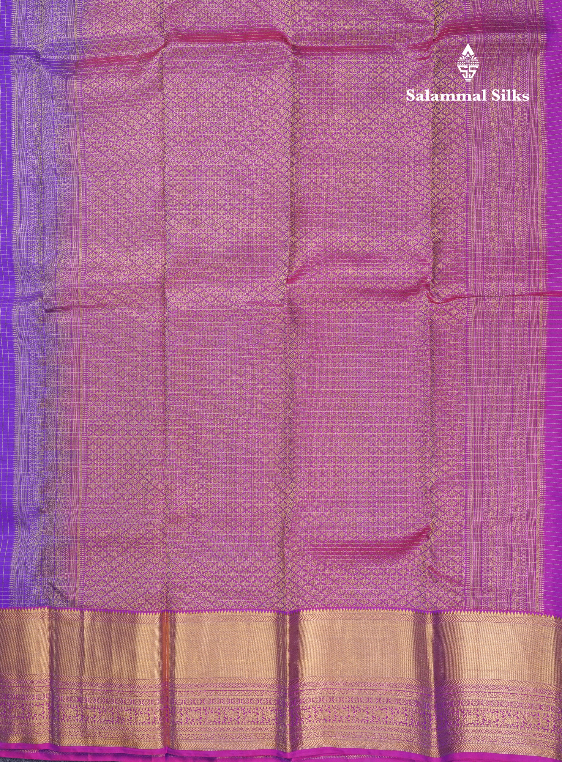 Violet Small Checks Pure Kanjivaram Silk Saree With Contrast Vadamalli Evening Morning Border