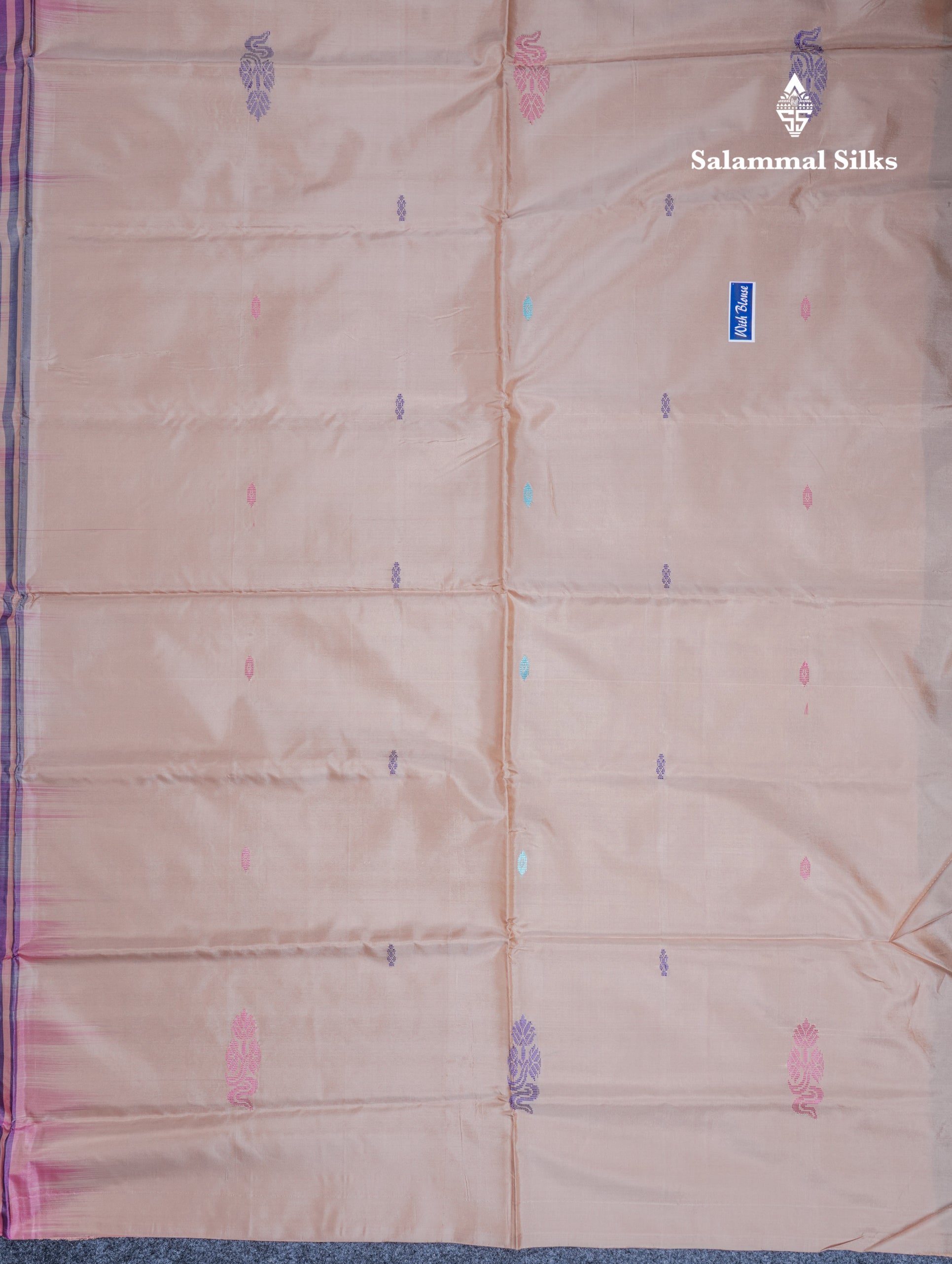 Violet Thread work Buttas Banana Pinth Saree (Vaazhainaar Pattu) With Contrast Sandal Blouse