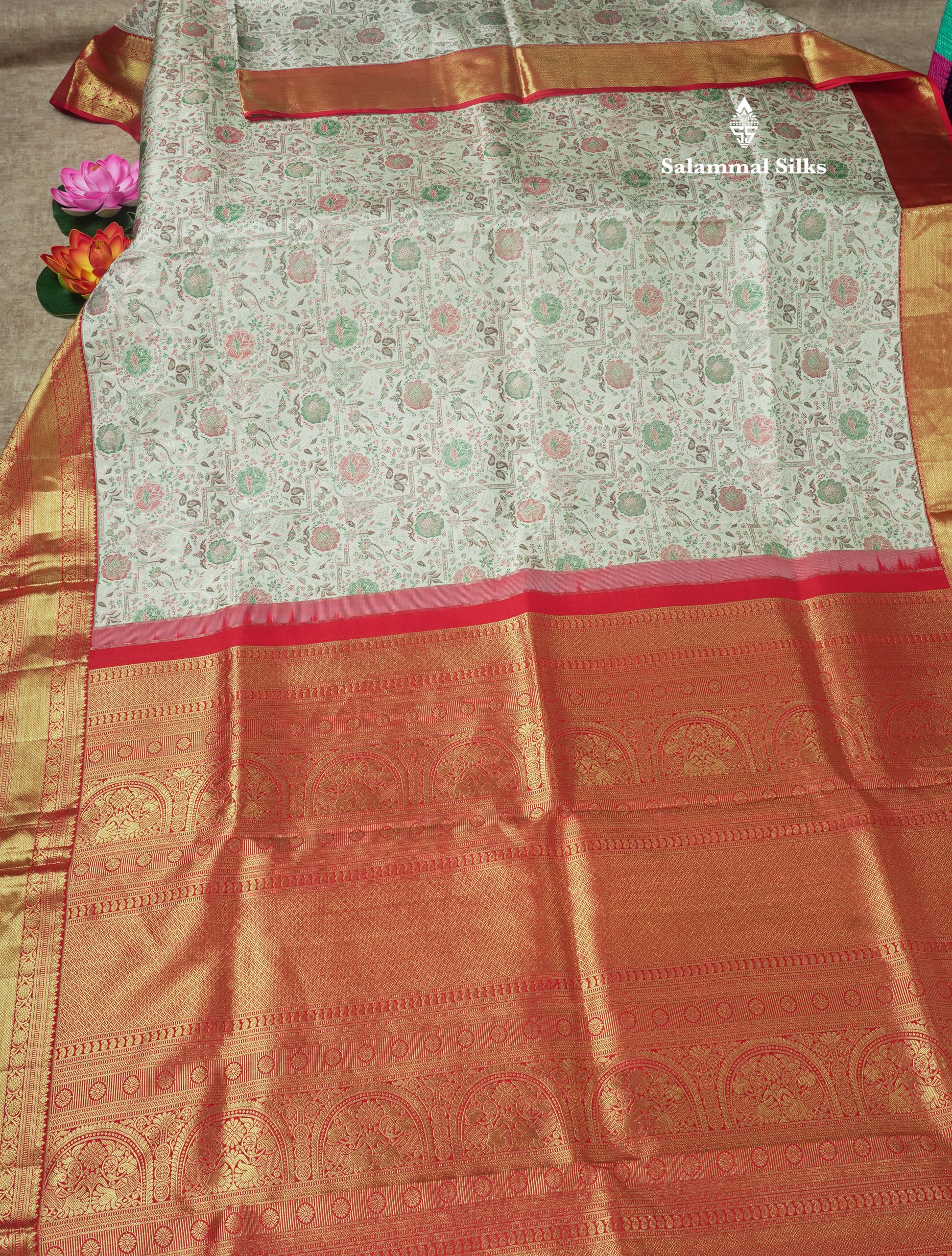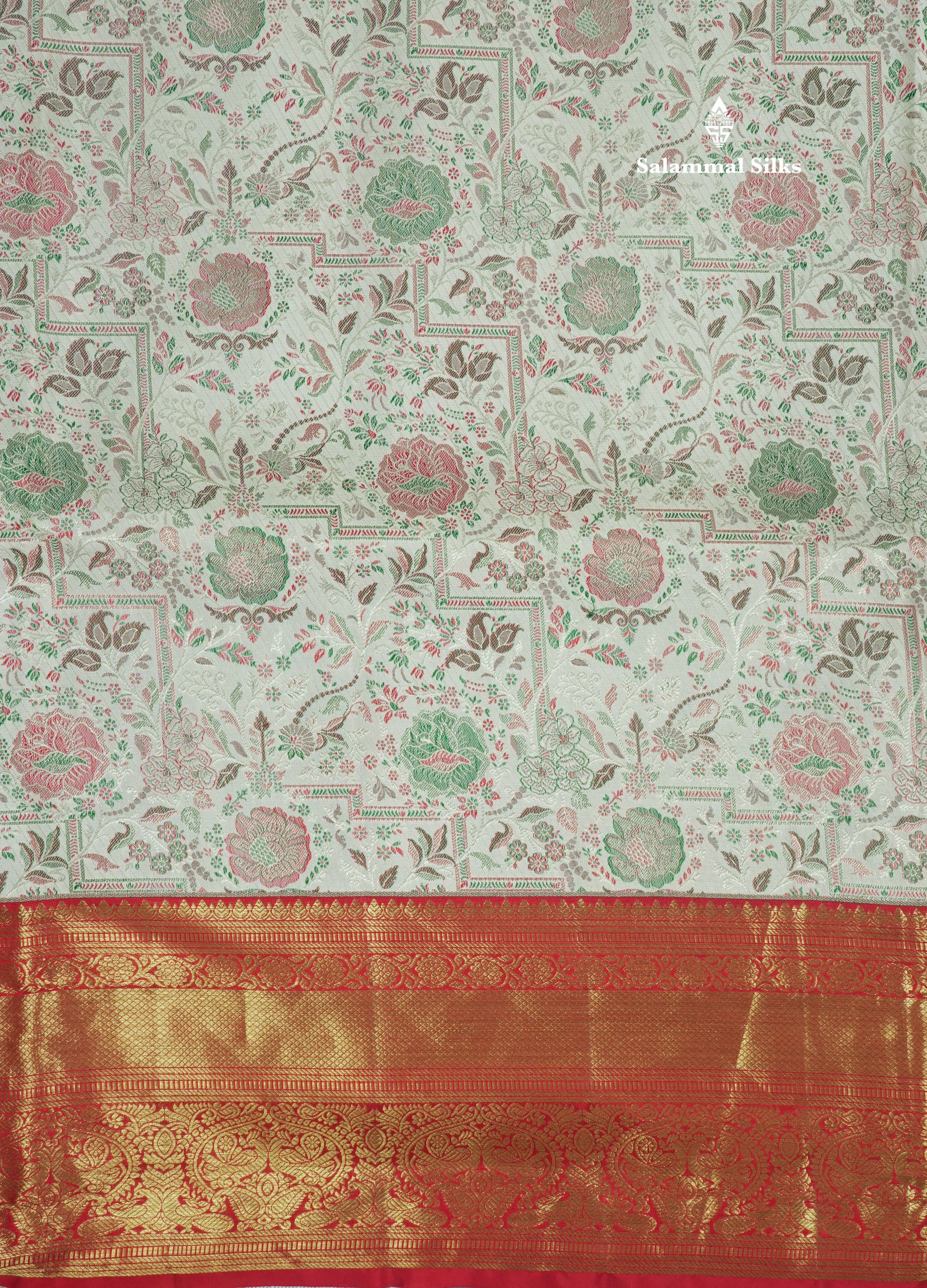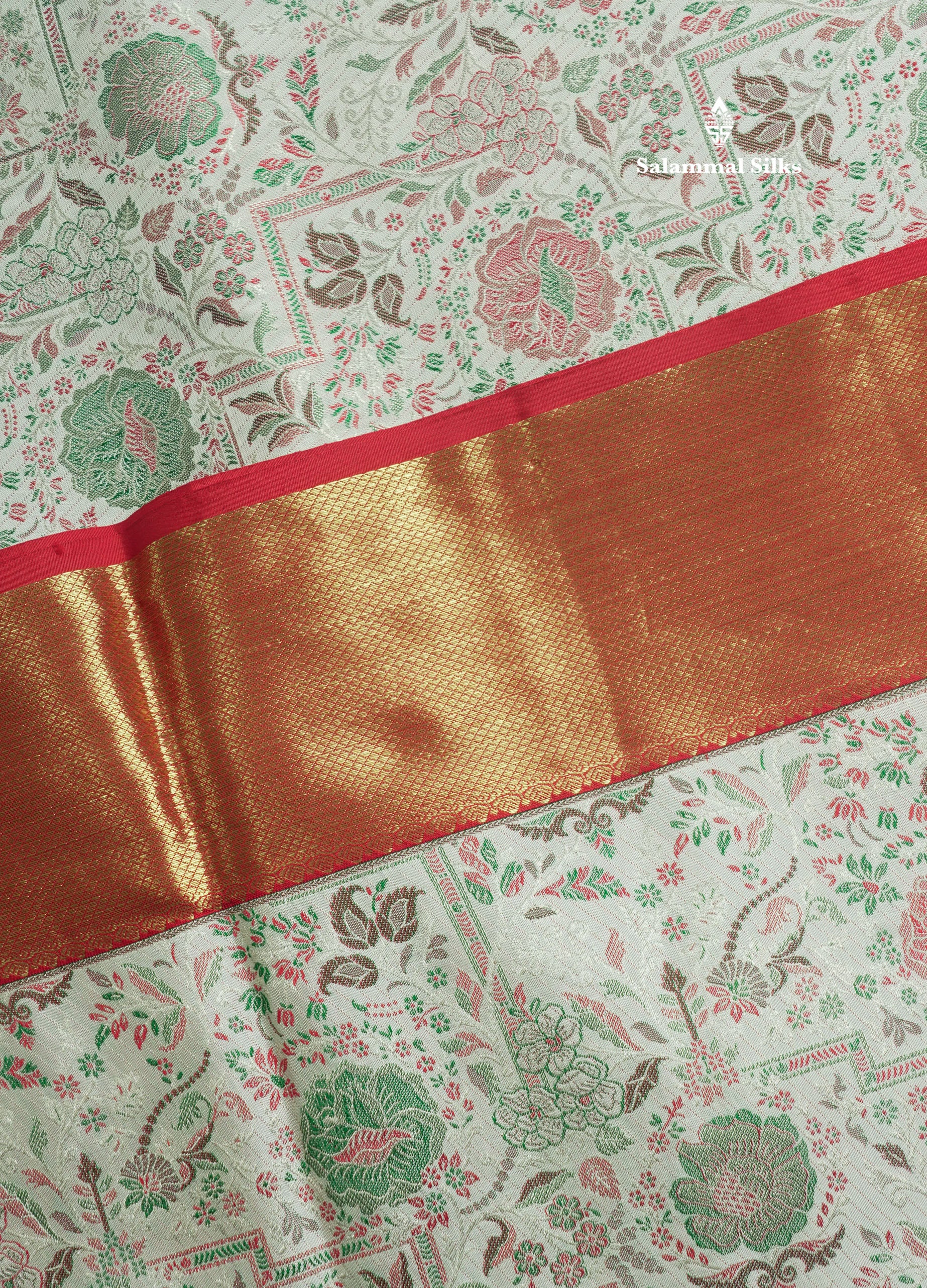 Beautiful Meenakari work White Bridal Pure Kanjivaram Silk Saree With Contrast Chilly Red Border