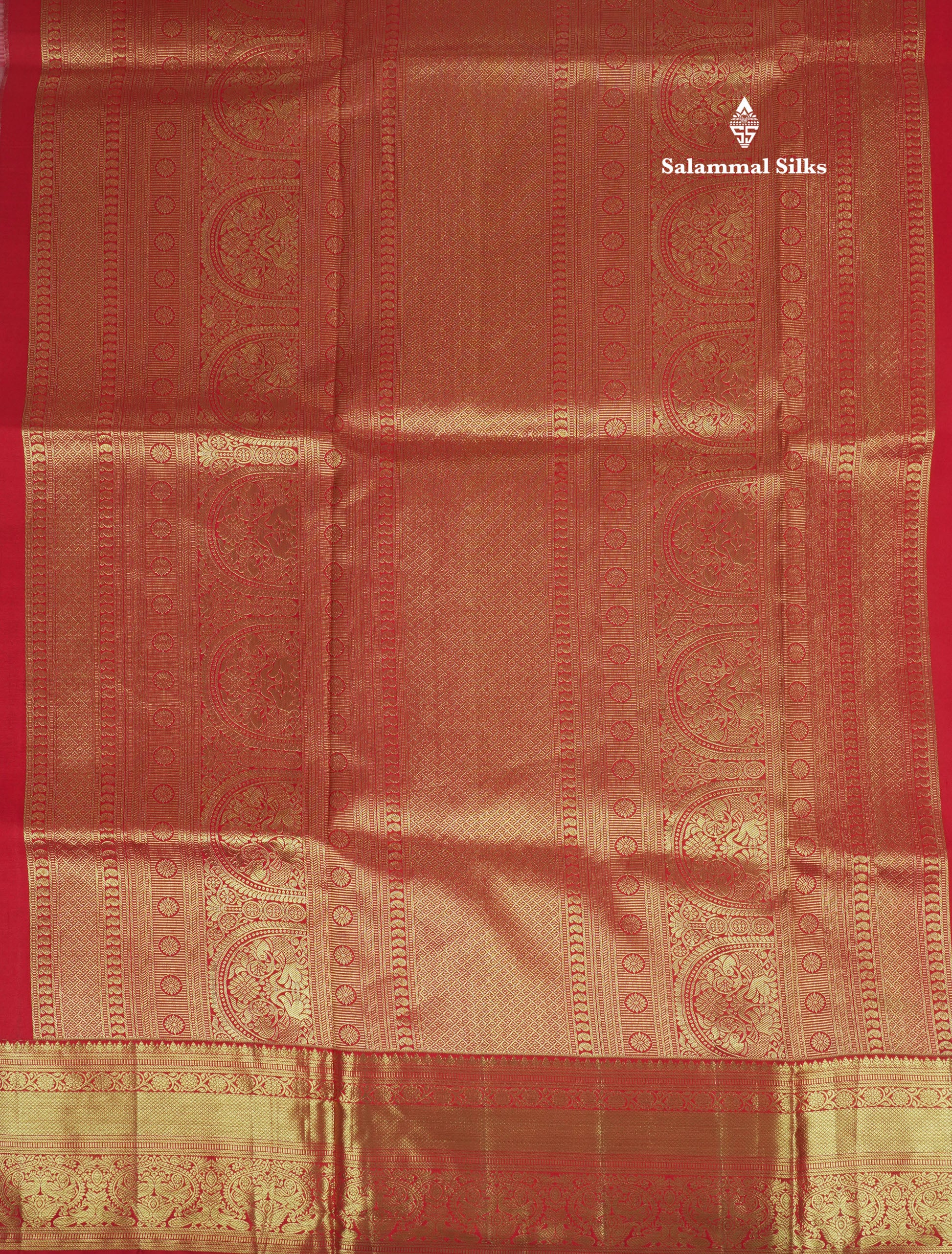 Salammal is known for its handloom sarees. In some sarees, there is cross-weaving between the body and the pallu, which is a sign of pure handloom sarees. This can be seen in Kanchipuram embossed sarees.