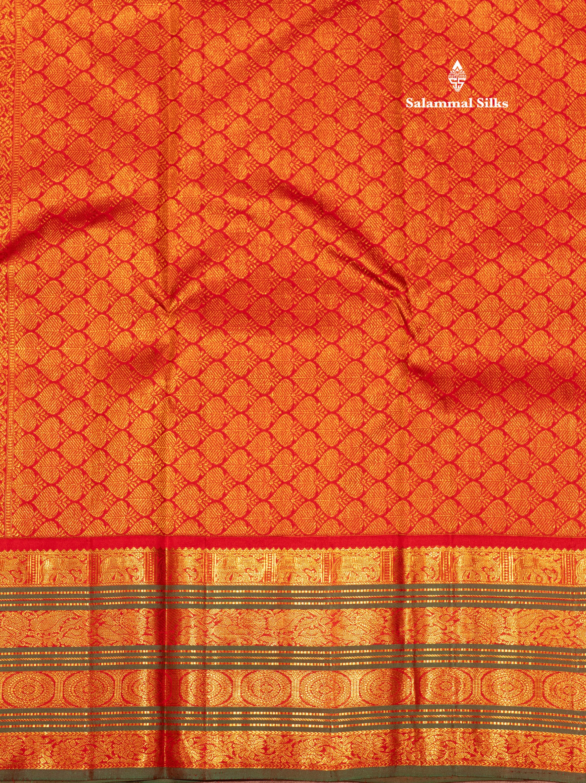 Salammal is known for its handloom sarees. In some sarees, there is cross-weaving between the body and the pallu, which is a sign of pure handloom sarees. This can be seen in Kanchipuram embossed sarees.