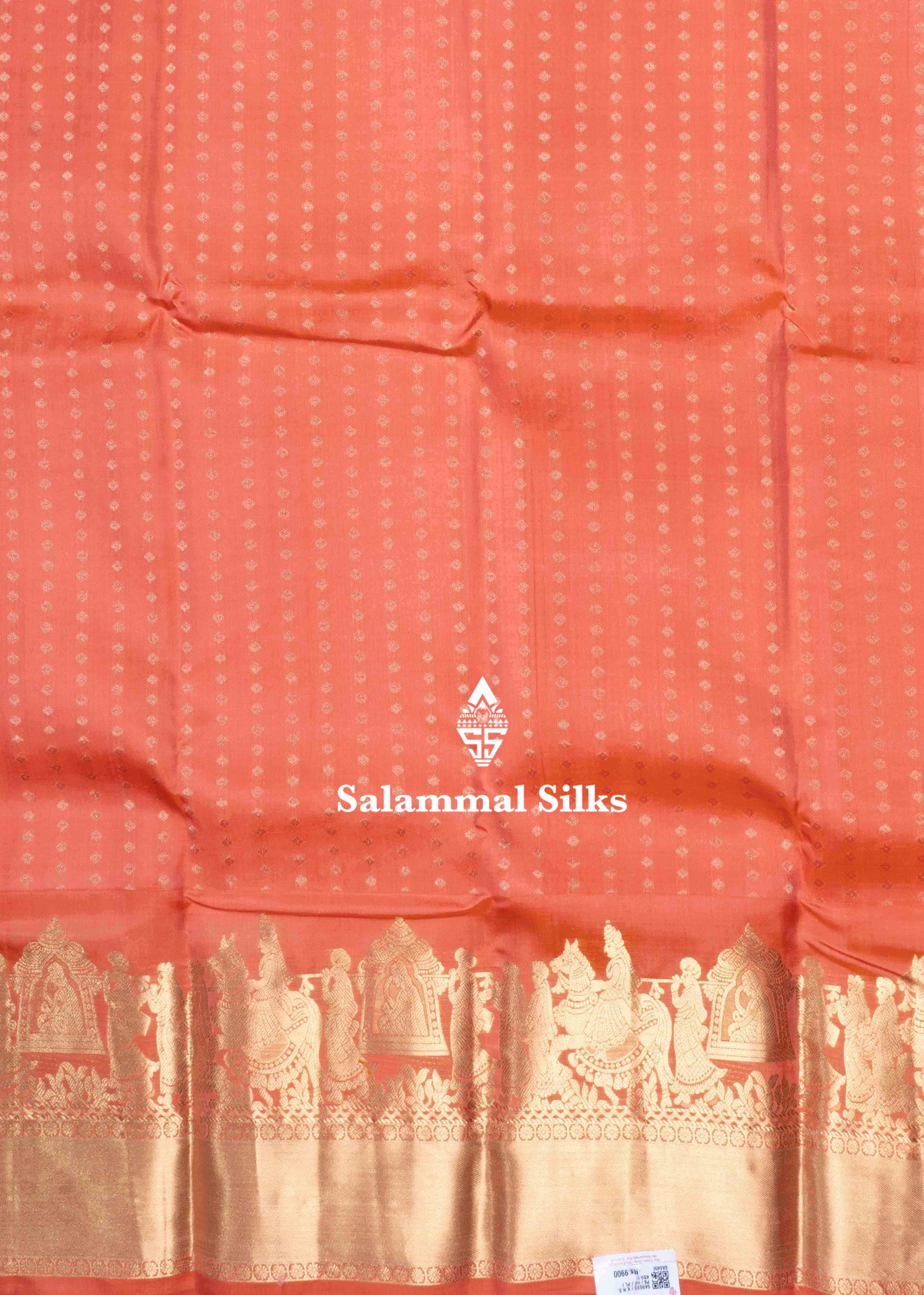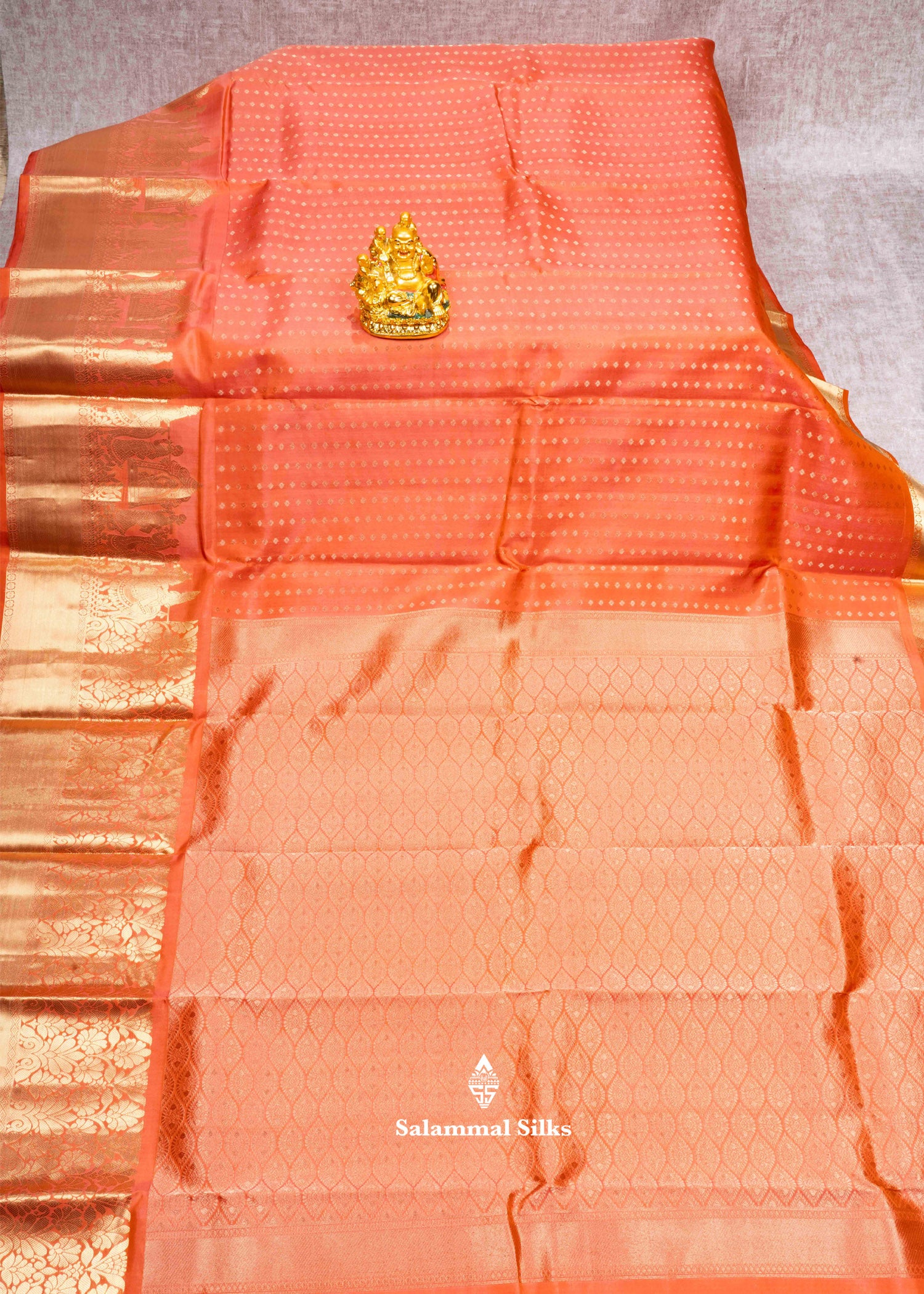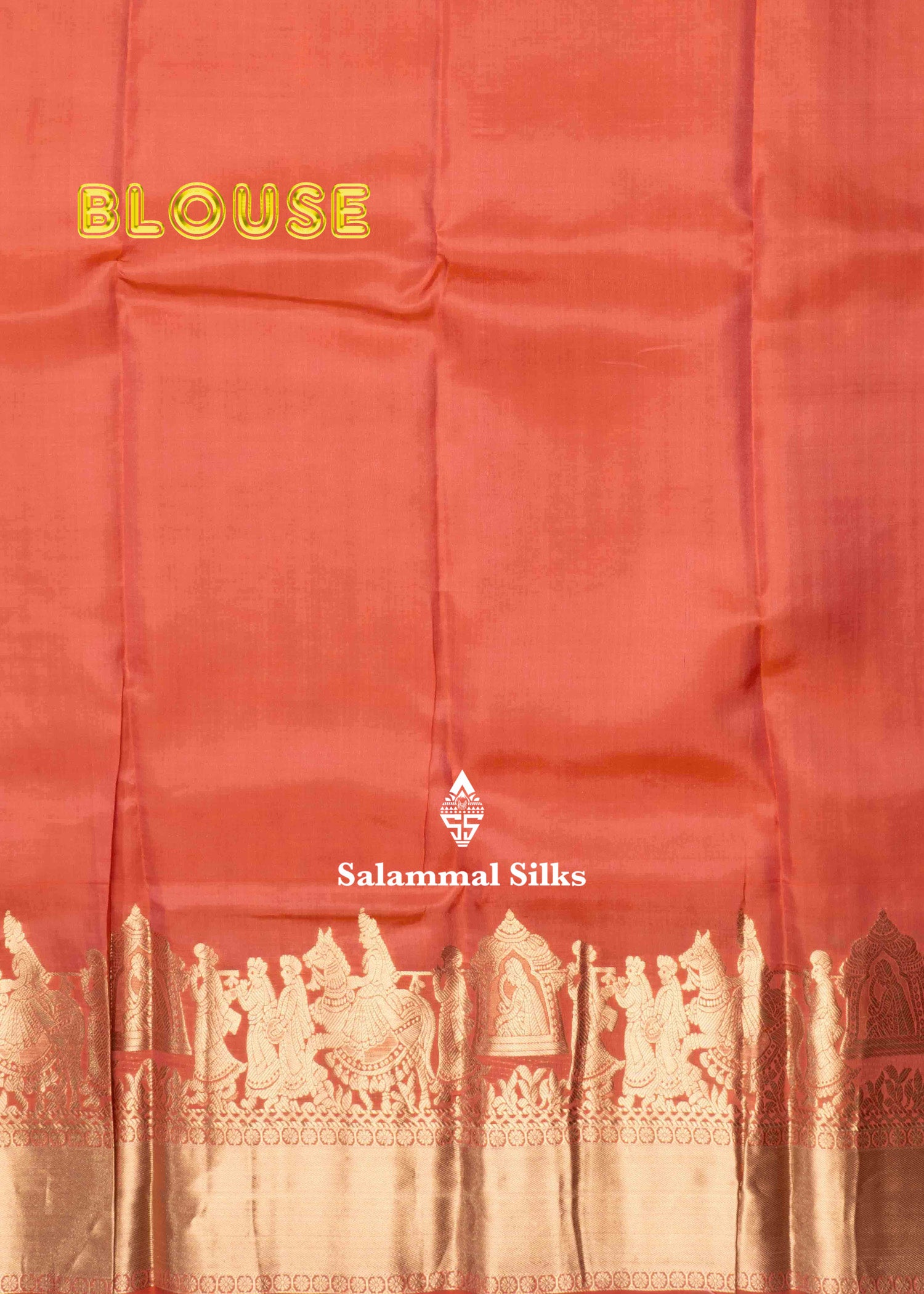 Orange Color Kanjivaram Pure Silk Saree Pallakku fancy Border and Blouse