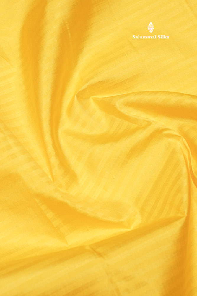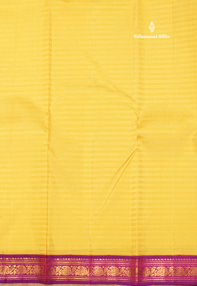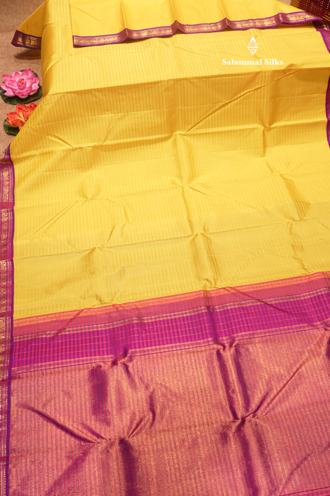 Korvai Yellow Pure Kanjivaram Silk Saree With Small Magenta Border