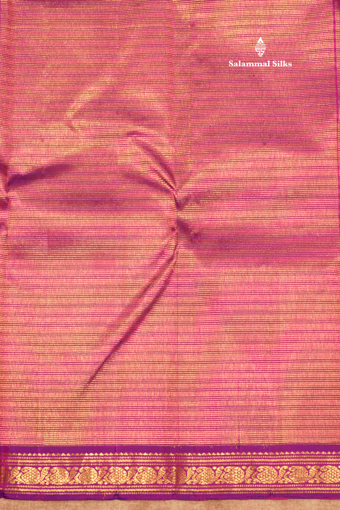 Salammal is known for its handloom sarees. In some sarees, there is cross-weaving between the body and the pallu, which is a sign of pure handloom sarees. This can be seen in Kanchipuram embossed sarees.