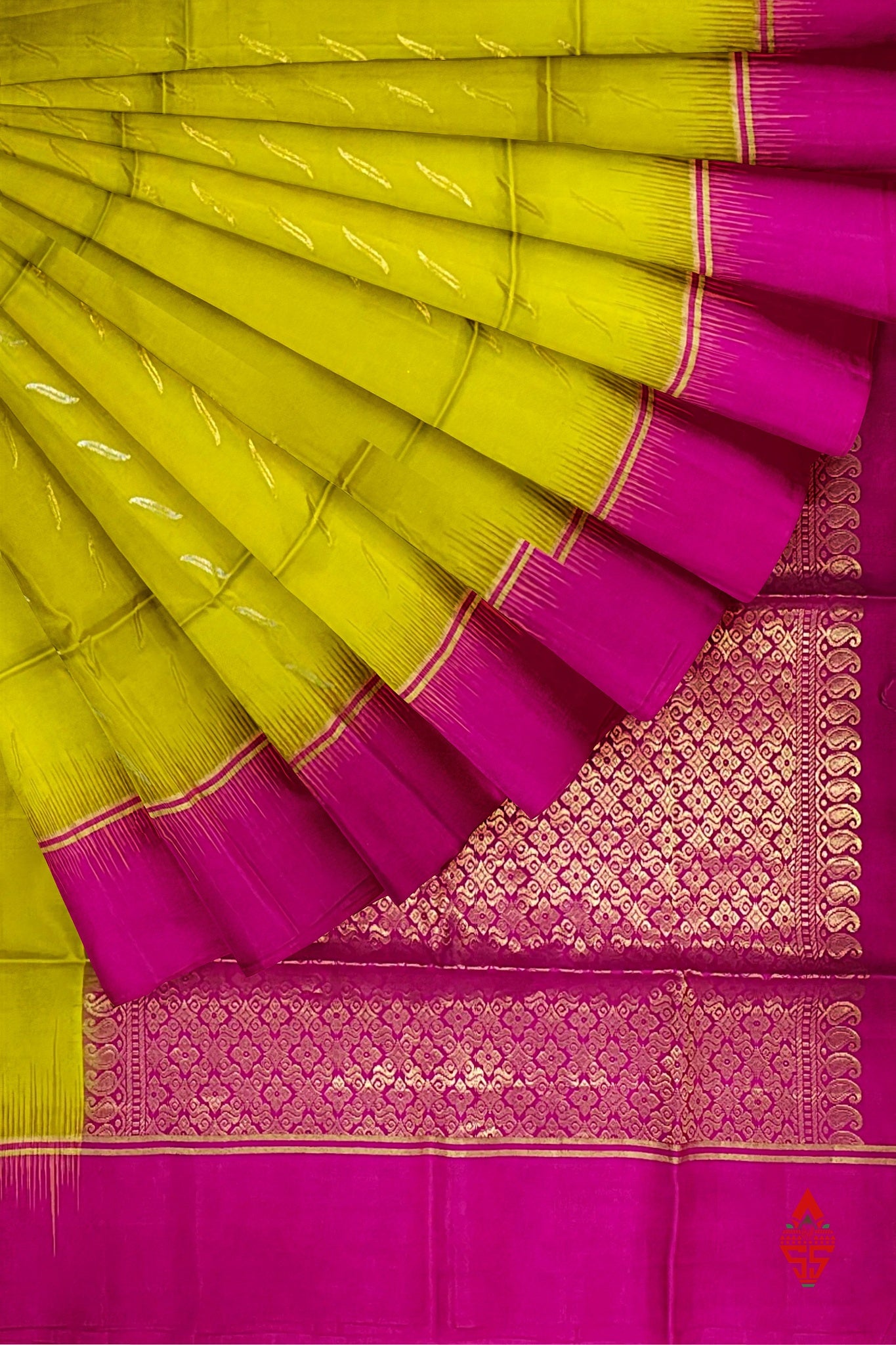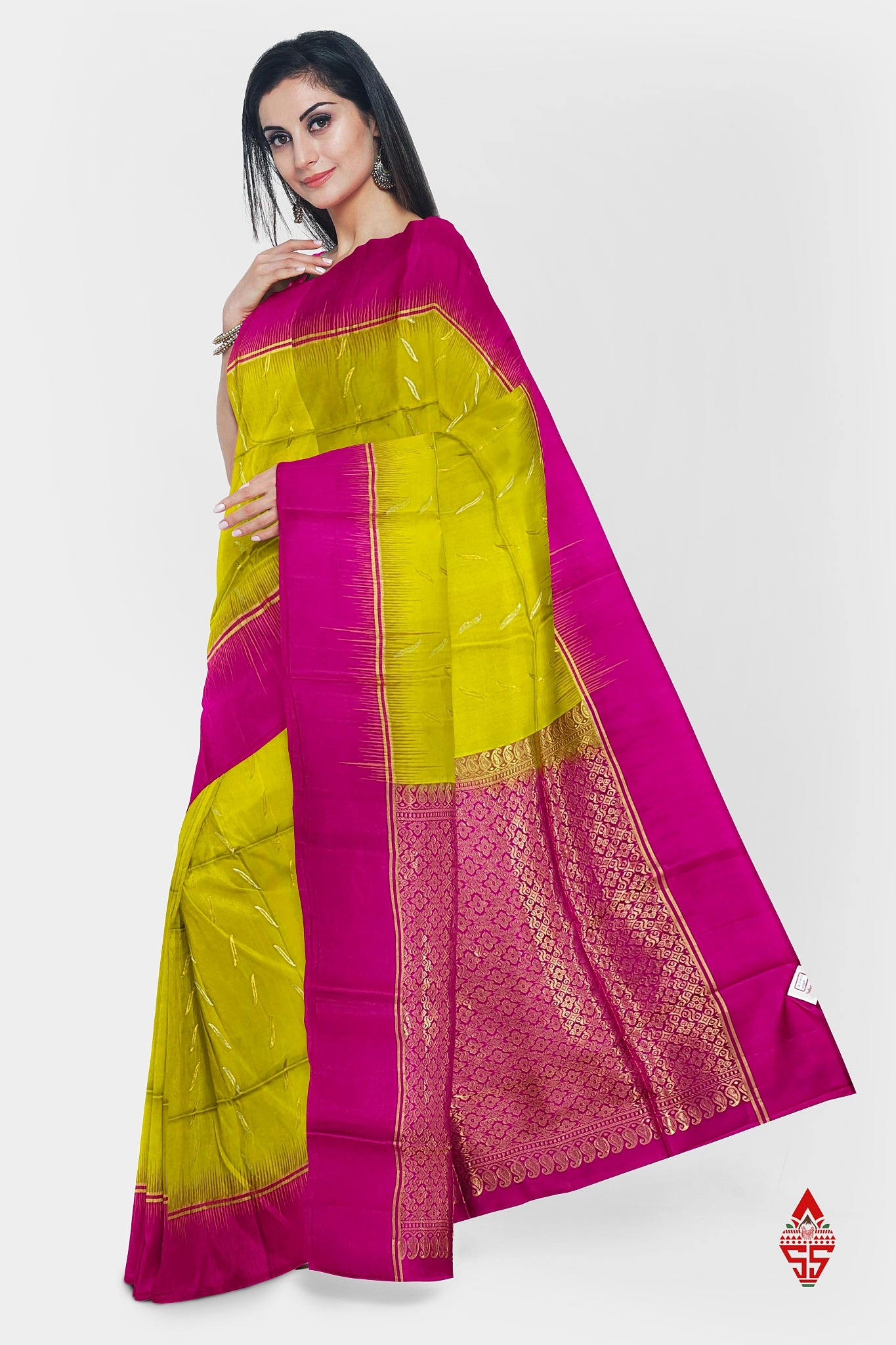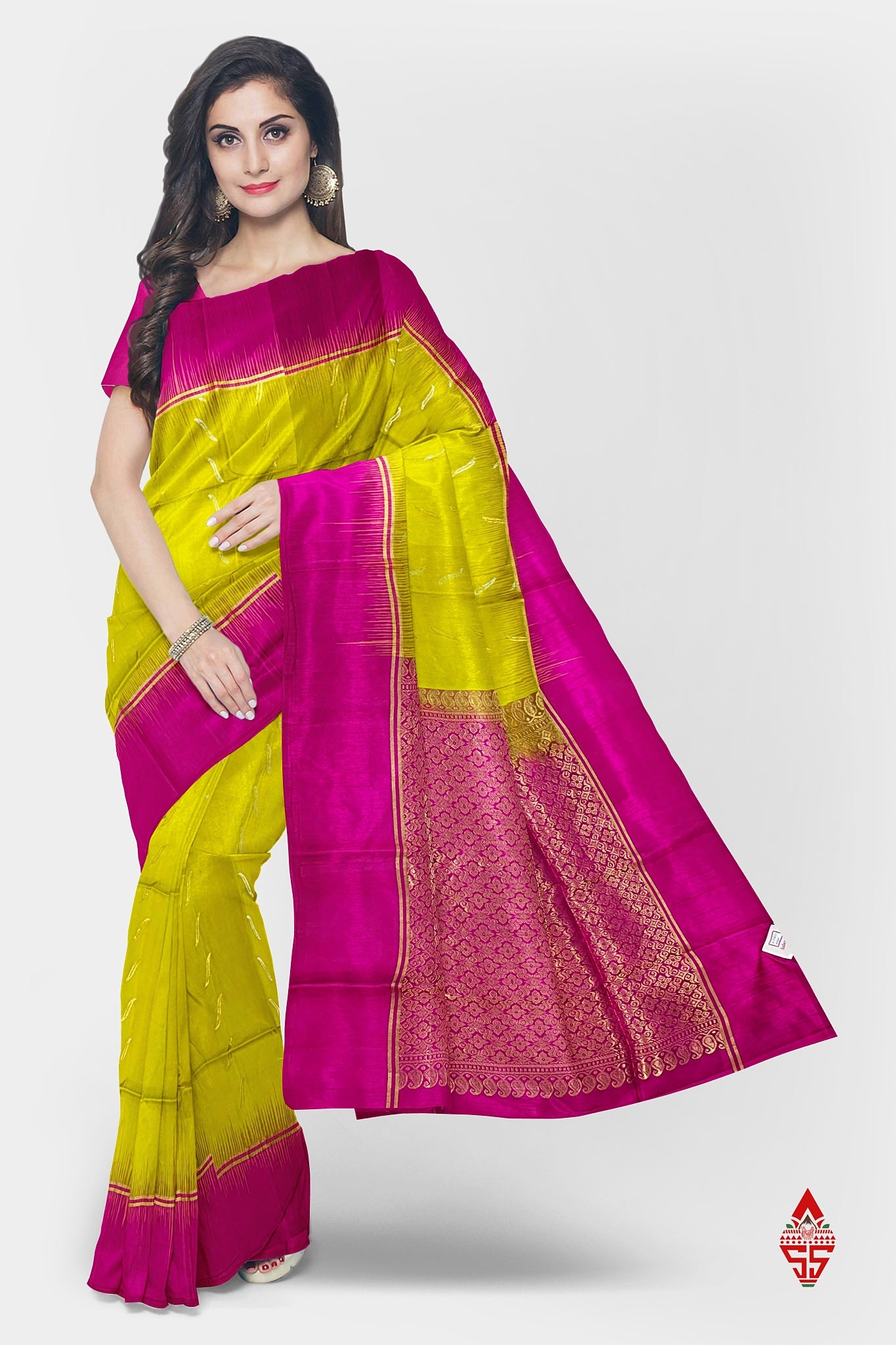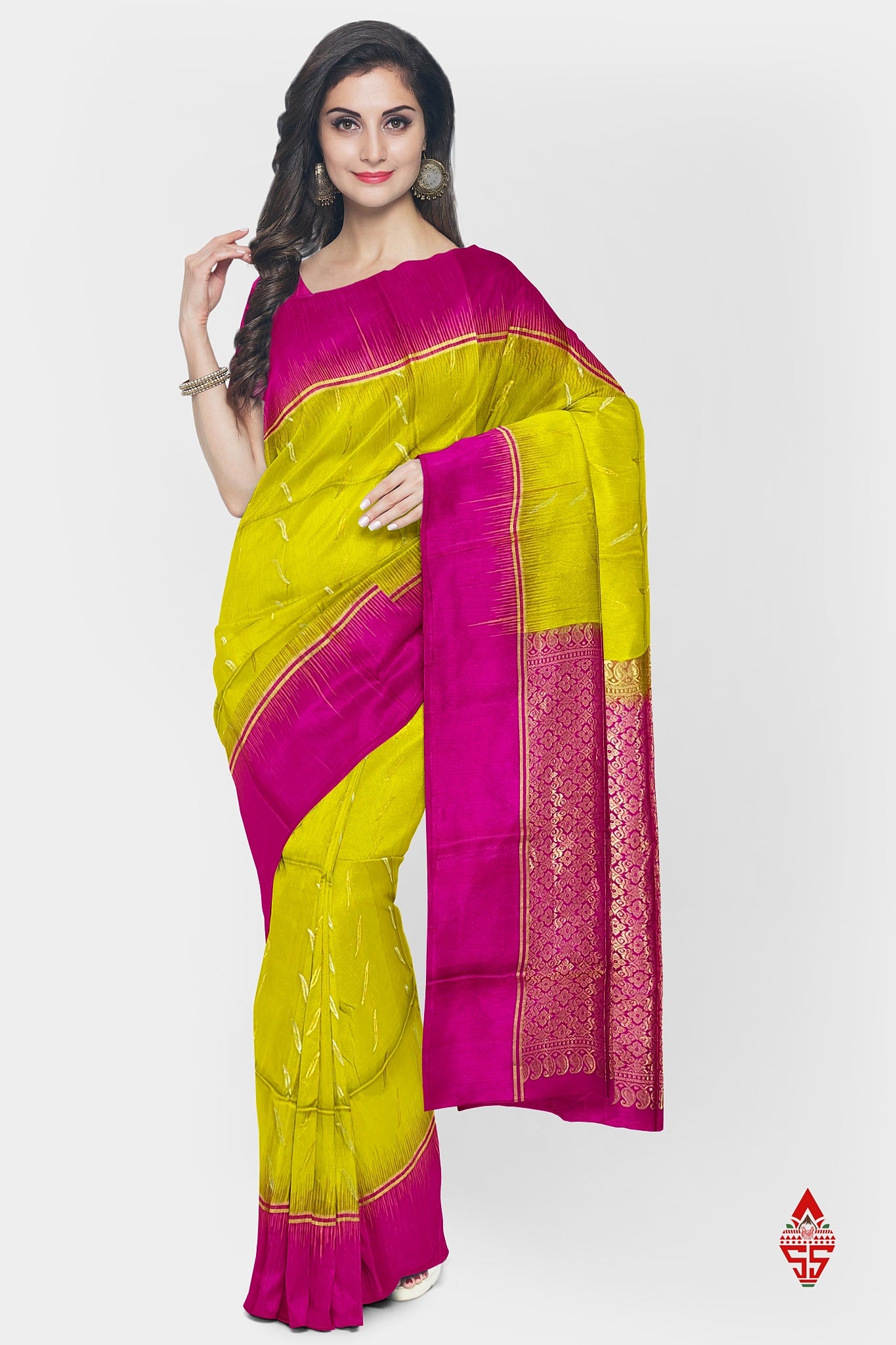 Yellow Fancy Pure Soft Silk Saree With Magenta Rose Blouse
