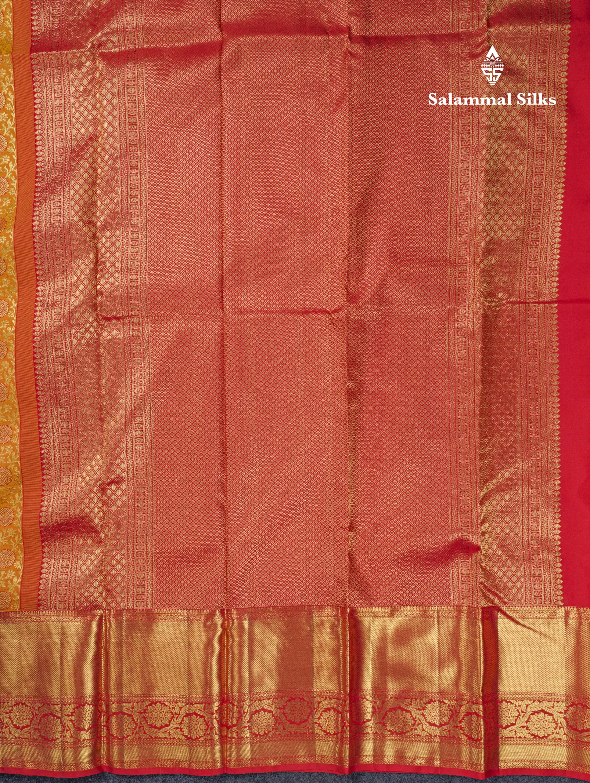 Salammal is known for its handloom sarees. In some sarees, there is cross-weaving between the body and the pallu, which is a sign of pure handloom sarees. This can be seen in Kanchipuram embossed sarees.